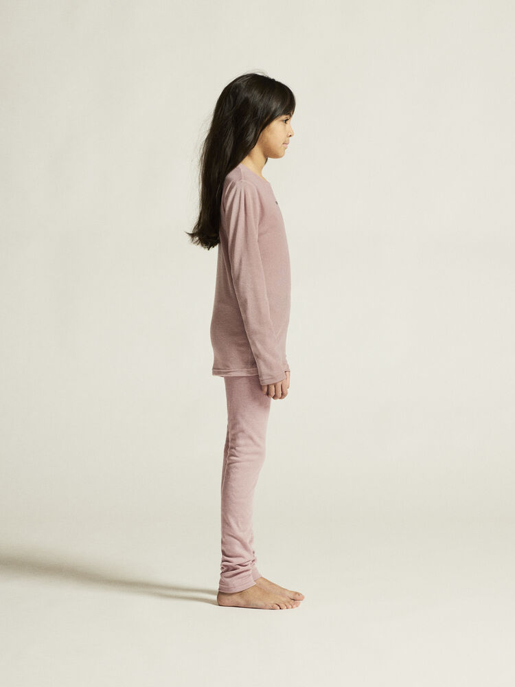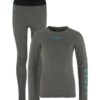 Plaggene er laget av funksjonell trikot med børstet innside som gir ekstra varme og komfort. Buksen og trøyen har flate sømmer som følger kroppens bevegelser.