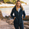 Funksjonell sportsjakke med tapede sømmer og vanntette glidelåser. Glidelåsåpning i rygg- og hettefôr til brodering og trykking. Avtagbar hette. Elastisk justering i linning.