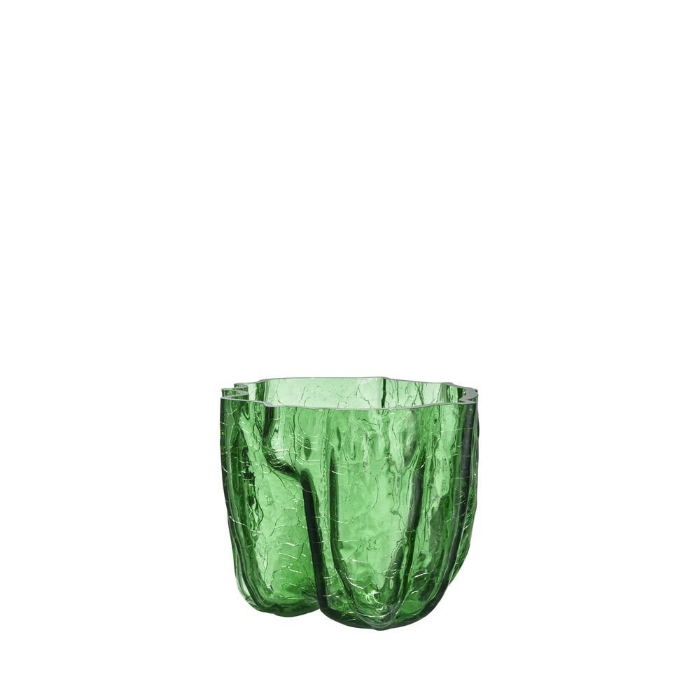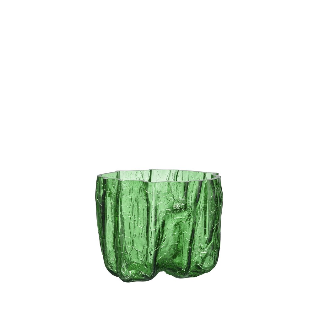 Knatring og torden – et magisk vidunder. Hos Kosta Boda undrer vi oss over vakkert bevarte sprekker i glass. Den grønne vasen fra Crackle-kolleksjonen har et uttrykksfullt, skulpturelt ytre laget med en gammel håndverksteknikk der det varme glasset dyppes i iskaldt vann. Den krakelerte overflaten reflekterer dagslyset og avslører historiene om ild, jord og vann. Vasen er munnblåst i Kosta og designet av Åsa Jungnelius.