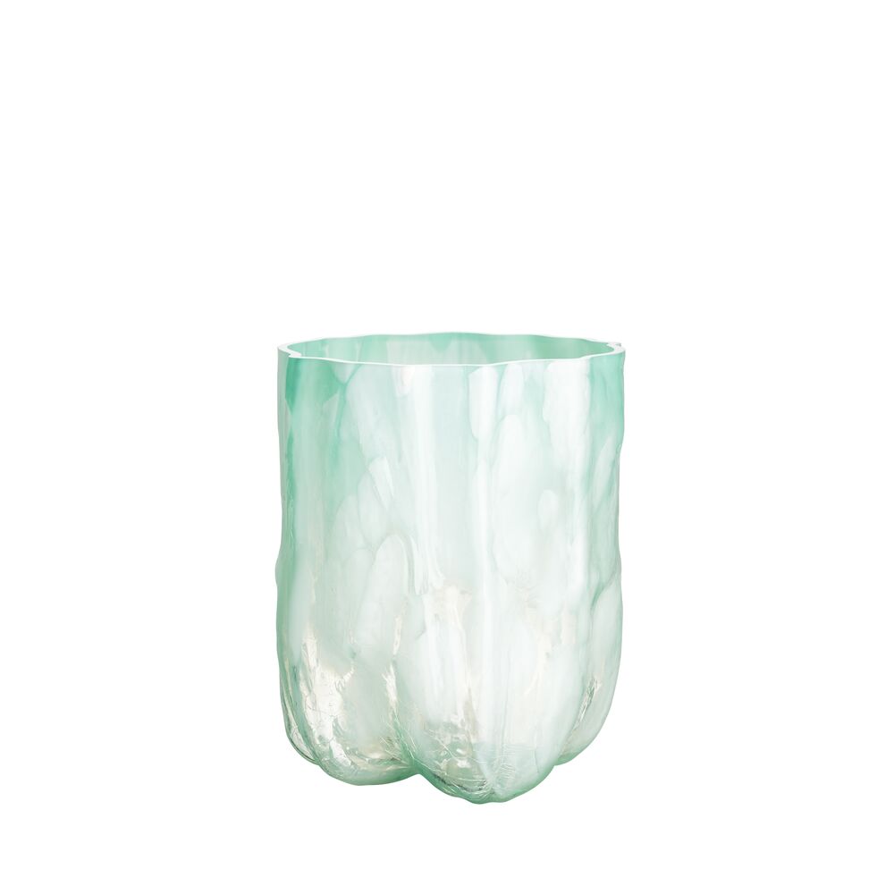 Crackle-serien er en hyllest til sprekker, vakkert bevart i glass. Vasen i grønn karmaling og knust glass har et skulpturelt og uttrykksfullt ytre som er skapt med en gammel håndverksteknikk, hvor det varme glasset dyppes i iskaldt vann. Crackle er munnblåst i Kosta og designet av Åsa Jungnelius.