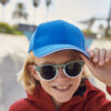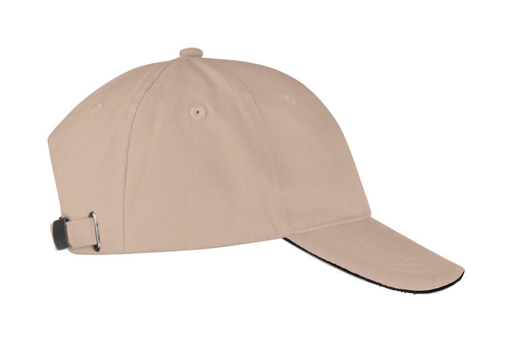 Caps til barn med "sandwitch" kontraststripe på skjermkanten og justerbare bånd med messingspenne.