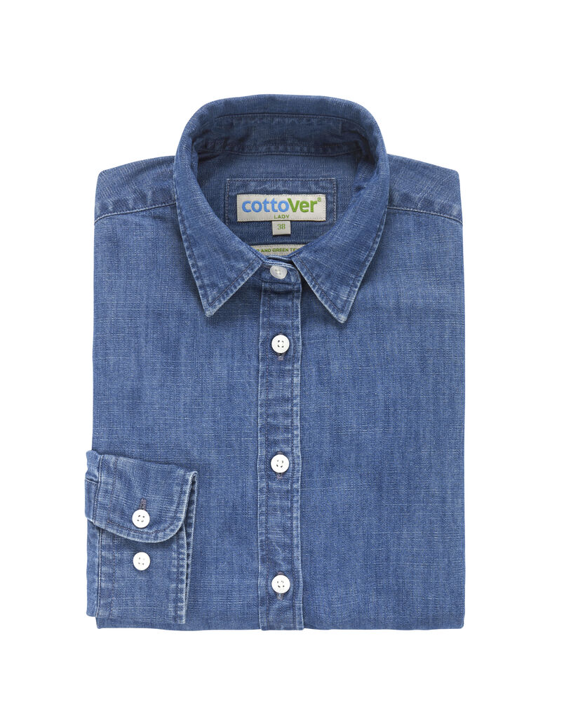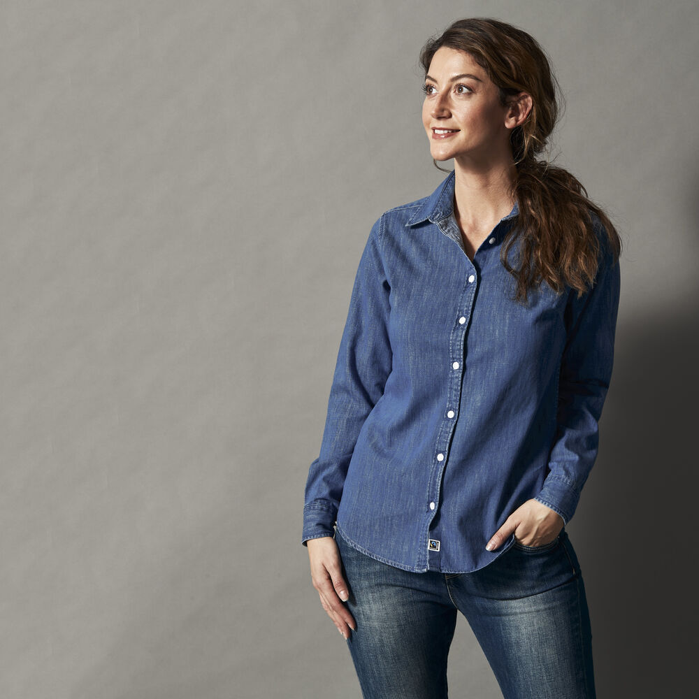 Denimskjorte med en god og myk følelse. Skjorten er enzymbehandlet, noe som gir hver skjorte et naturlig og unikt utseende. Innsvinget modell med to snitt i ryggen som gir en skreddersydd silhuett. Turn down-krage.