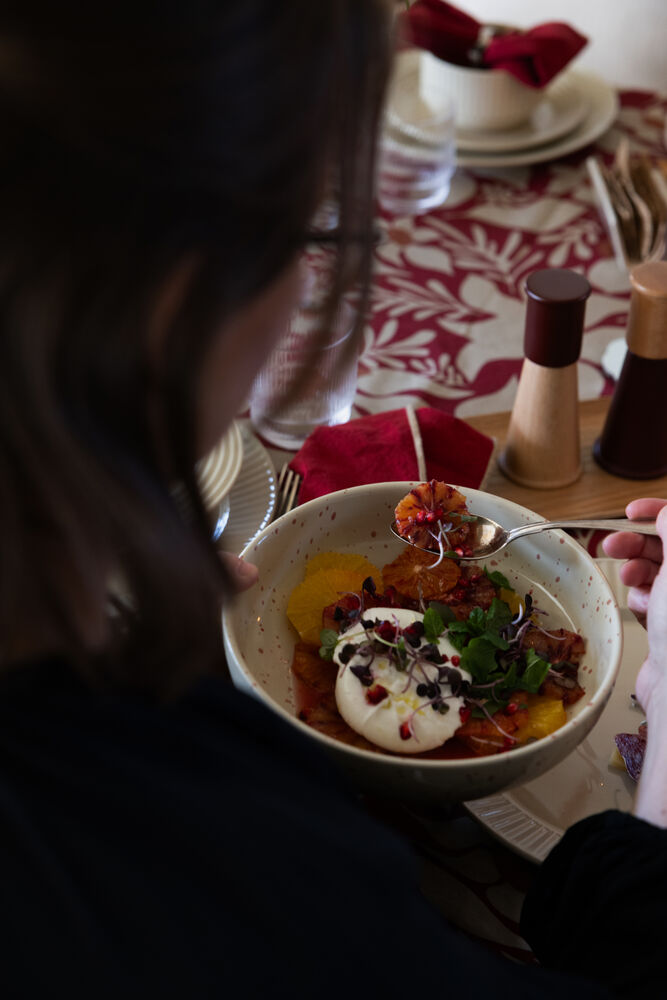 En stor serveringsskål til snacks eller tilbehør til middagen. Fargen er beige med prikker i svakt vinrødt. Serien passer også godt sammen med Coffee & More. Ditte er håndlaget. Farge og overflate kan derfor variere fra produkt til produkt. Hvert produkt er unikt i sitt slag. Laget av steingods. Design Studio Sagaform. Leveres i en klassisk gaveeske. Tåler oppvaskmaskin og er godkjent for matvarer.