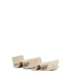 En tacoserie uten et stativ for tacoskjell ville ikke føltes seriøst. Så her er det! Men det fungerer like godt til å servere soft buns, wraps eller pølse i brød. Fargen går i en beige tone med prikker i svak vinrød nyanse. Stativet er stabelbart. Selges i 2-pakning. Ditte er håndlaget. Farge og overflate kan derfor variere fra produkt til produkt. Hver del er unik. Laget i steingods. Design Studio Sagaform. Leveres i en klassisk gaveeske. Tåler oppvaskmaskin og er matsikker.