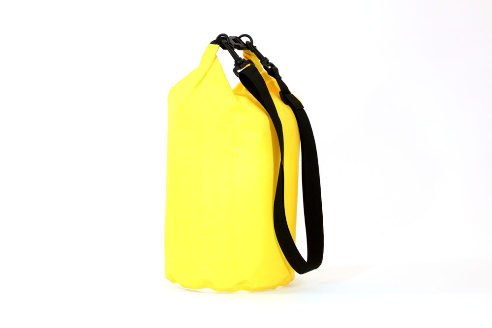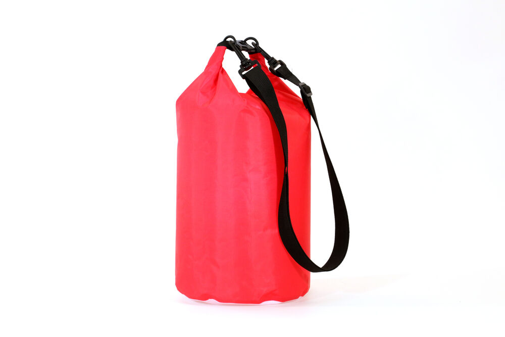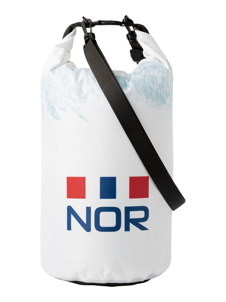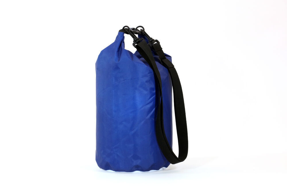 Vanntett duffelbag, ideell på stranden, i båten eller for eksempel på en spasertur gjennom skogen. Fylt med luft, forblir vesken flytende i nødstilfeller! Med medfølgende ekstra ring og krok kan den også lett bæres som en crossbody-veske. Vanntett IPX6, beskyttet mot vannsprut fra alle vinkler. Ikke senk vesken under vann.