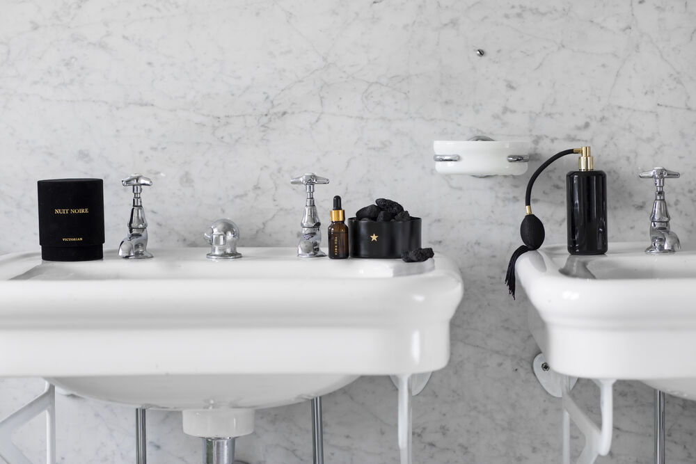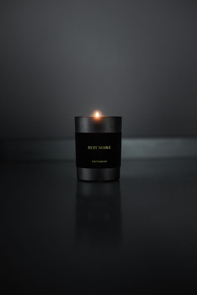 Victorian Velvet Nuit Noire – Lys i en svart glassbeholder med lekker fløyelsdetalj. Med en krydret duft av jasminblomst og et hint av musk.