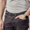 Stretch belte i polyester med metallspenne. Passer til både dame og herre.