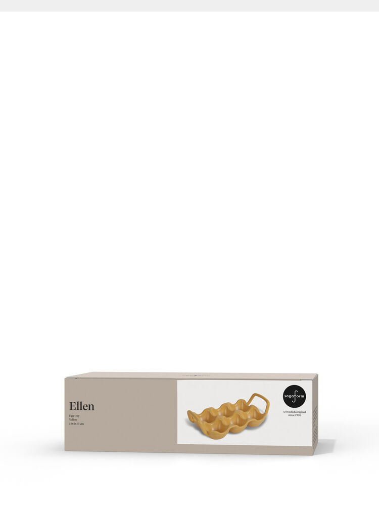 Vi bruker Ellen eggebrett i steingods som oppbevaring og til servering hele året, men også til de malte påskeeggene. Ellen eggebrett har praktiske håndtak, plass til seks egg og er farget i en varm gul farge. Leveres i fin gaveeske. Eggbrettet tåler oppvaskmaskin, noe som forenkler rengjøring og vedlikehold. Ellen eggebrett tilhører Ellen-serien, som er en gitt Sagaform-klassiker med stilig design. Serien fungerer like bra hele året, til hverdagsbruk så vel som under våre kjære høytider og tradisjoner.