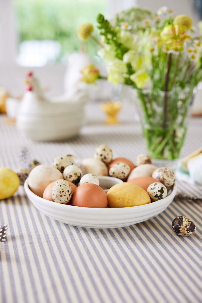 Eden vokset duk er vakkert mønstret og laget av resirkulert bomull (70 %) og polyester (30 %). Den voksede overflaten gjør duken vannavstøtende og perfekt for bruk både utendørs og innendørs. Den beige duken har Sagaforms karakterisktiske striper. Tilgjengelig i størrelse 150×250 cm. Pakket i et fint pappbånd.