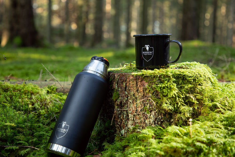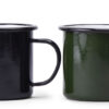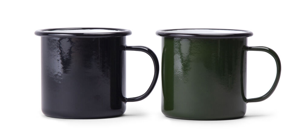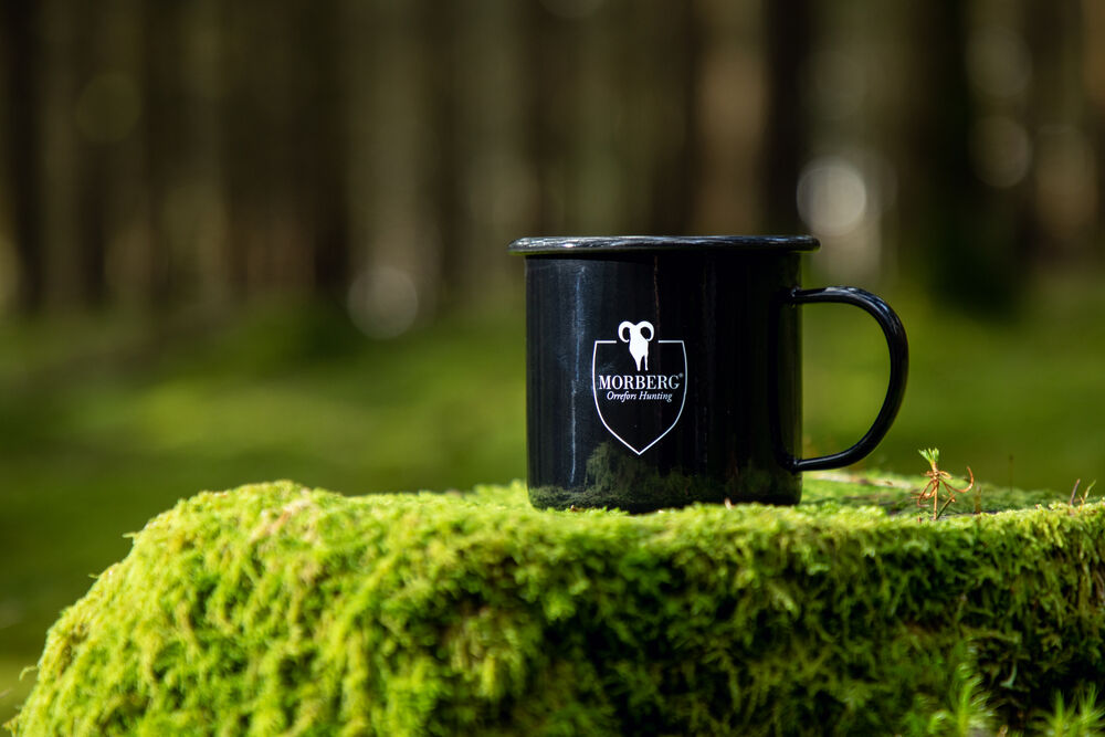 Porselensemaljert metallkopp som er støtsikker og perfekt for skogsturen.