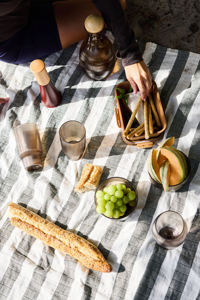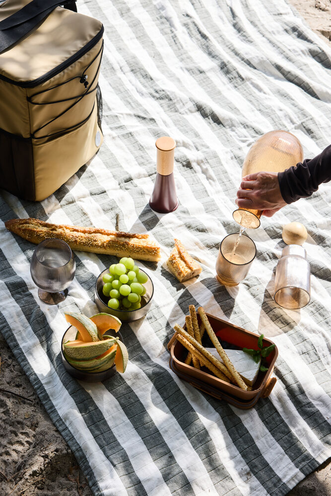 Et pledd som er behagelig, mykt og kjølig. Med sitt klassiske stripete mønster blir det et stilig tilskudd til hjemmet ditt. Laget av 70 % resirkulert bomull og 30 % resirkulert polyester. Mål: 130×170 cm. Tilgjengelig i to farger. Leveres i en klassisk gaveeske.