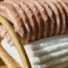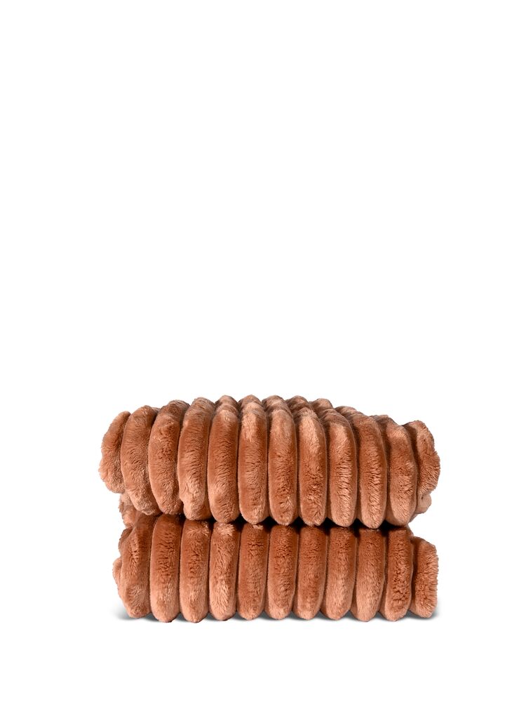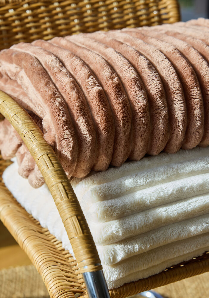 Esther fleecepledd i lysebrunt er det perfekte pleddet – mykt, varmt og omsluttende. Den dype nyansen gir et tidløst og innbydende uttrykk, mens de diskrete stripene tilfører en klassisk følelse. Laget av resirkulert polyester er det et bærekraftig valg for kvelder i sofaen, koselige stunder på terrassen eller utflukter i naturen. Med sin tykkere kvalitet på 340 g/m² gir det en luksuriøs følelse, samtidig som det er lett nok til å ta med hvor enn du går. Finnes i flere farger. Mål: 130×170 cm.