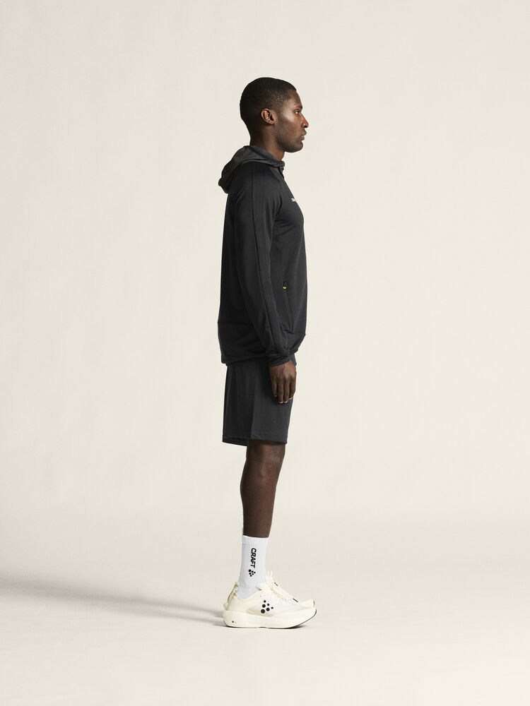 Extend Full Zip er et svært funksjonelt treningsplagg utviklet for maksimal ytelse på høyeste nivå. Denne premium jakken er laget av et tynt, svært elastisk og resirkulert polyestermateriale som gir effektiv fukttransport og optimal bevegelsesfrihet. Plagget har hel glidelås foran, sidepaneler med teksturert overflate, to sidelommer med glidelås og en vevd hette med hempe for sikker oppbevaring når hetten ikke er i bruk. Tett passform.