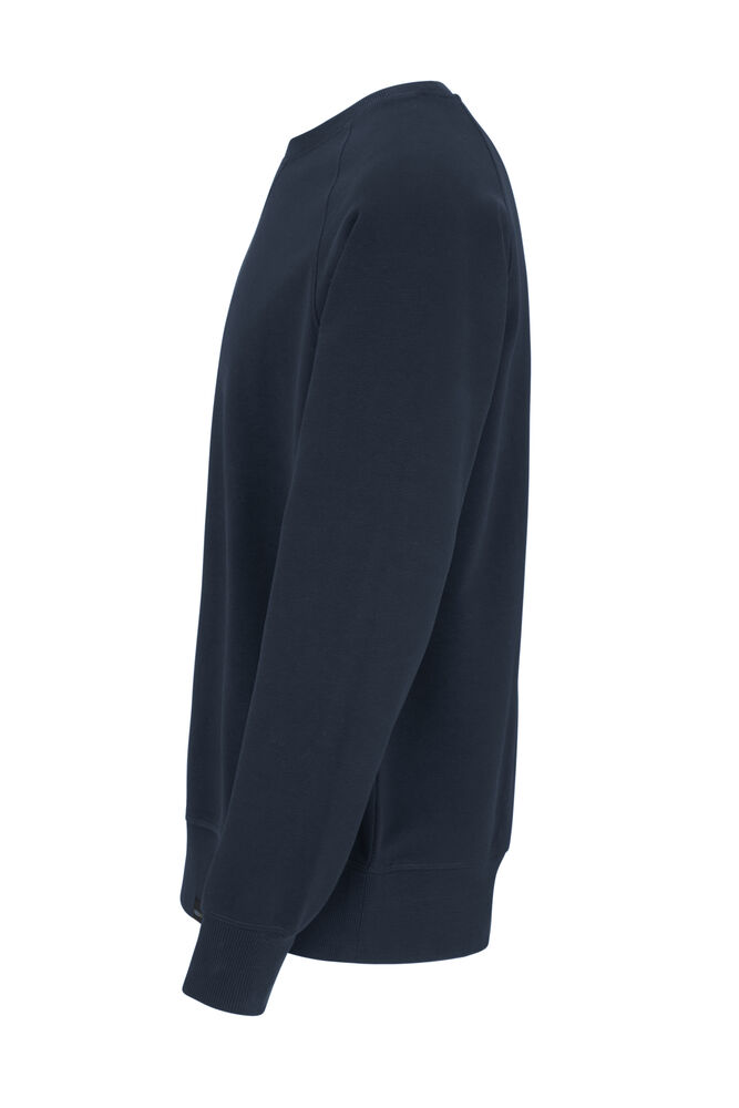 Kraftig sweatshirt laget av french terry (med små løkker på innsiden). 2×2 ribb rundt halsen, i mansjettene på ermene og i nederkant. Dekorsømmer i overlock.