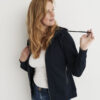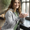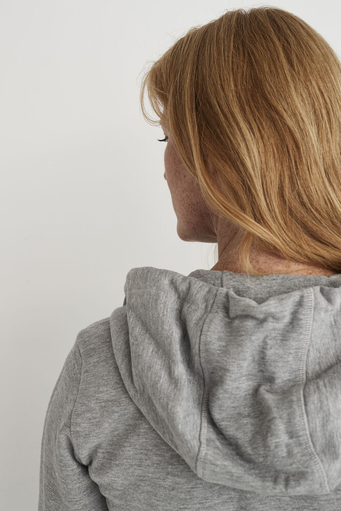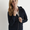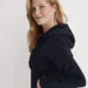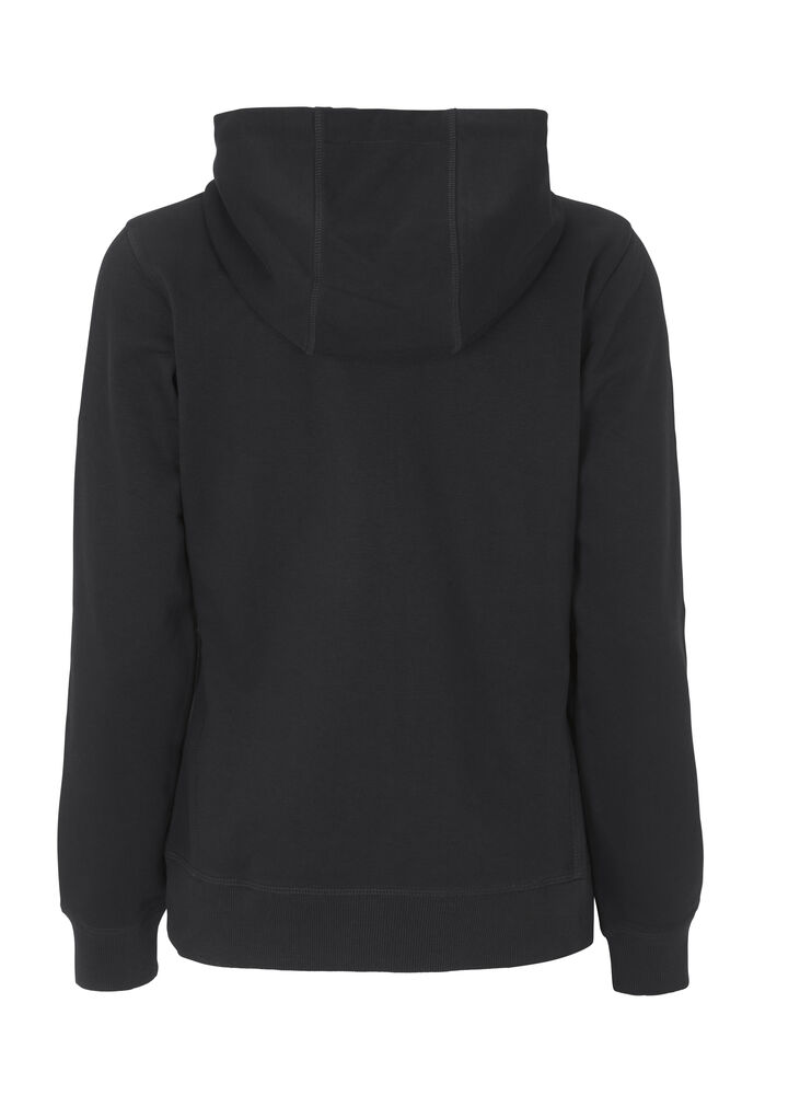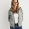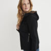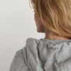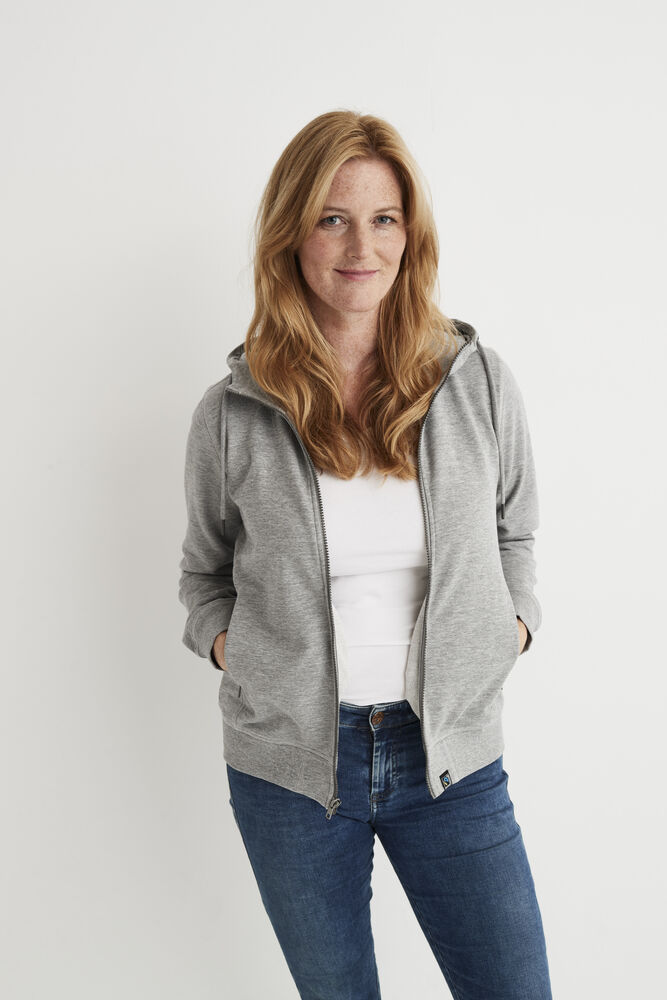 Hettegenser laget av French Terry (med små løkker på innsiden). 2×2 ribb i nederkant og i mansjettene. Formsydd hette med doble sømmer og snøring. Synlige YYK-glidelåser med detaljer i antikk sølvmetallfarge, hel glidelås som går opp i kragen og glidelåser i frontlommene. Dekorsømmer i overlock og snøring i hetten – alt ton i ton. Lett innsvinget modell.