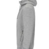 Hettegenser laget av French Terry (med små løkker på innsiden). 2×2 ribb i nederkant og i mansjettene. Formsydd hette med doble sømmer og snøring. Synlige YYK-glidelåser med detaljer i antikk sølvmetallfarge, hel glidelås som går opp i kragen og glidelåser i frontlommene. Dekorsømmer i overlock og snøring i hetten – alt ton i ton.