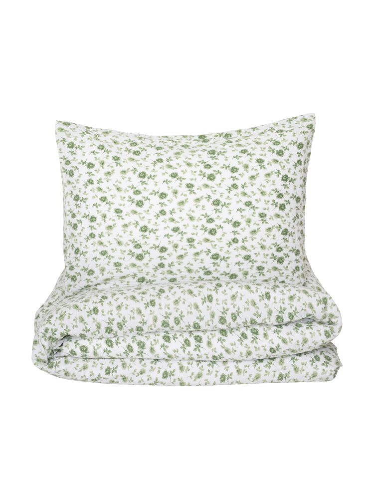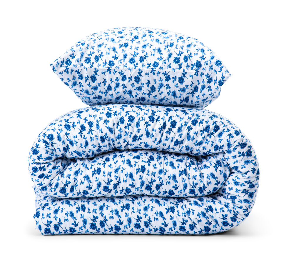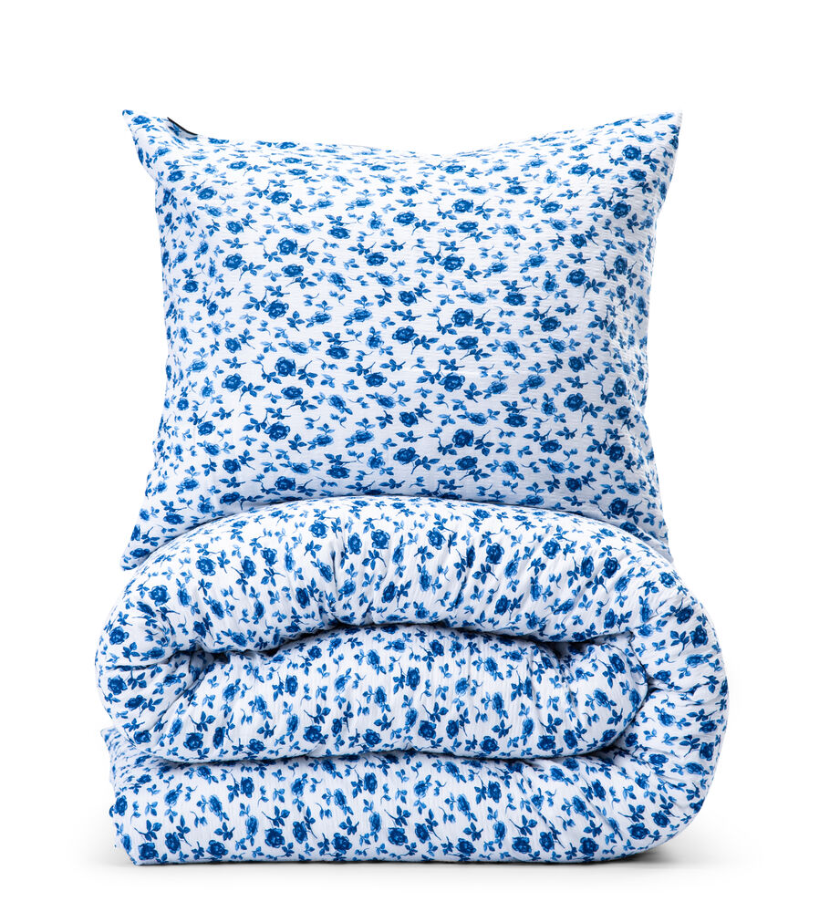 Drøm søtt i et sengesett med et klassisk lite blomster- og landmønster. Vevd i en fin bekkebølge som gir en avkjølende følelse mot huden i sommervarmen.
