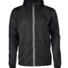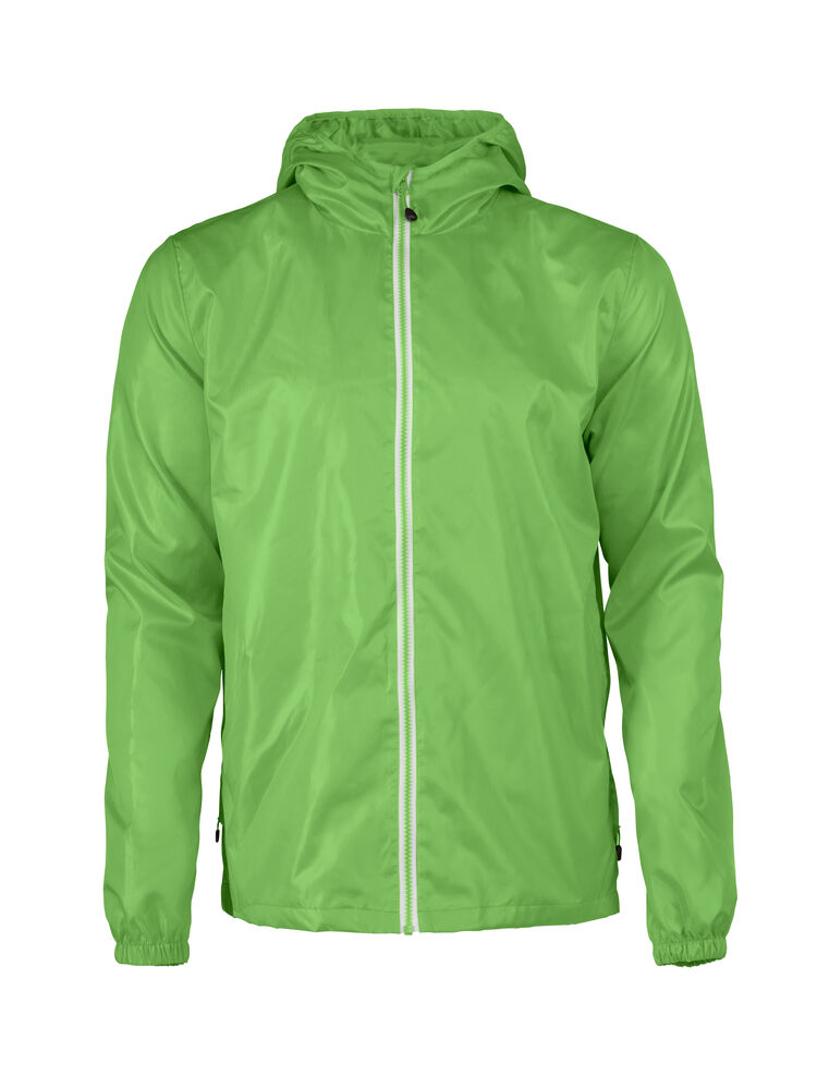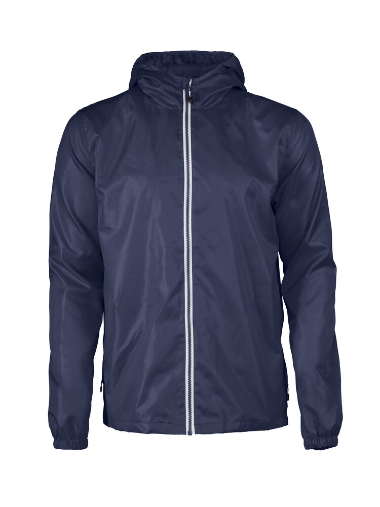 Vindjakke med vannavvisende materiale. YKK-glidelås med kontrast i front og i lommene. Varmende fôr på innsiden og i hetten.