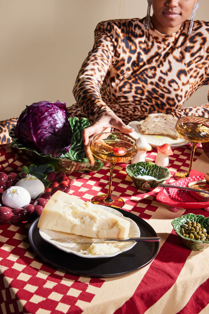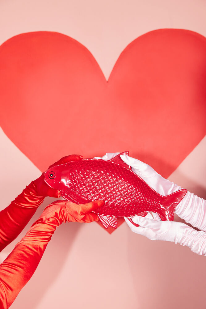 Tanken bak etableringen av Kai var å designe et morsom fat som skulle fungere som et samlingspunkt på det dekkede bordet i sesongens høytiden. Designet av en fisk i en mørkerød tone og et utstående mønster ble valgt for å gi retten karakter. For å tilføre både høyde og lekenhet ble rødkål inkludert som praktiske føtter. Dette gjør fatet både mer elegant og praktisk når den skal sendes over bordet. Materialet er dolomitt. Design Byon Studio. Leveres i Byon boks.