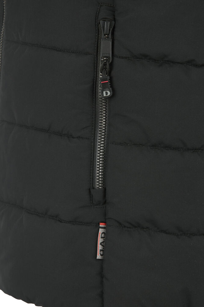 Lettvattert vest med sydde paneler. Laget av sertifisert resirkulert polyester. Vesten er etterbehandlet med Bionic Finish Eco, som gir en vannavvisende effekt. Hel glidelås som går opp i kragen. To frontlommer – begge med dekorative, synlige YKK-glidelåser. Skjult strikk i nederkant og synlig strikk rundt ermehullene.