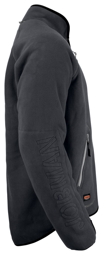 Vendbar isolerende jakke med fiberpels på den ene siden og fleece på den andre. Romslige frontlommer med glidelås på fleecesiden og med knapp på pelssiden. Forsterket på undersiden av ermene. Tommelhull på mansjetter. Forlenget rygg.