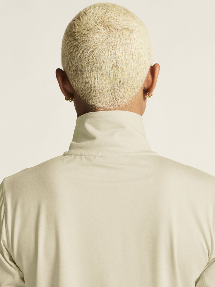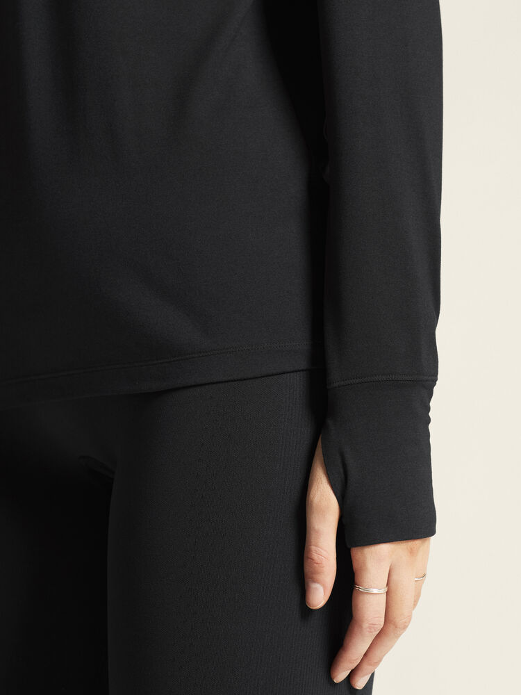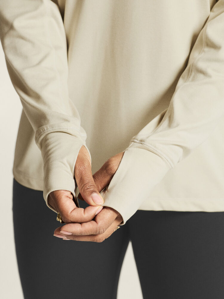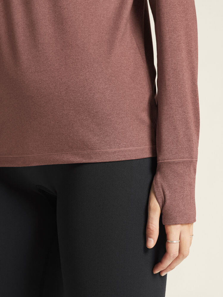 Denne allsidige langermete trøyen er laget av et funksjonelt stoff av resirkulert polyester og elastan og har en finbørstet innside som gir en myk følelse mot huden. Trøyen har også en litt romsligere passform enn tradisjonelle, tettsittende undertøy for mer fleksibel bruk. Perfekt å bruke som et frittstående plagg i mildere temperaturer eller som et ekstra lag under en tykkere genser eller jakke i kjøligere forhold.