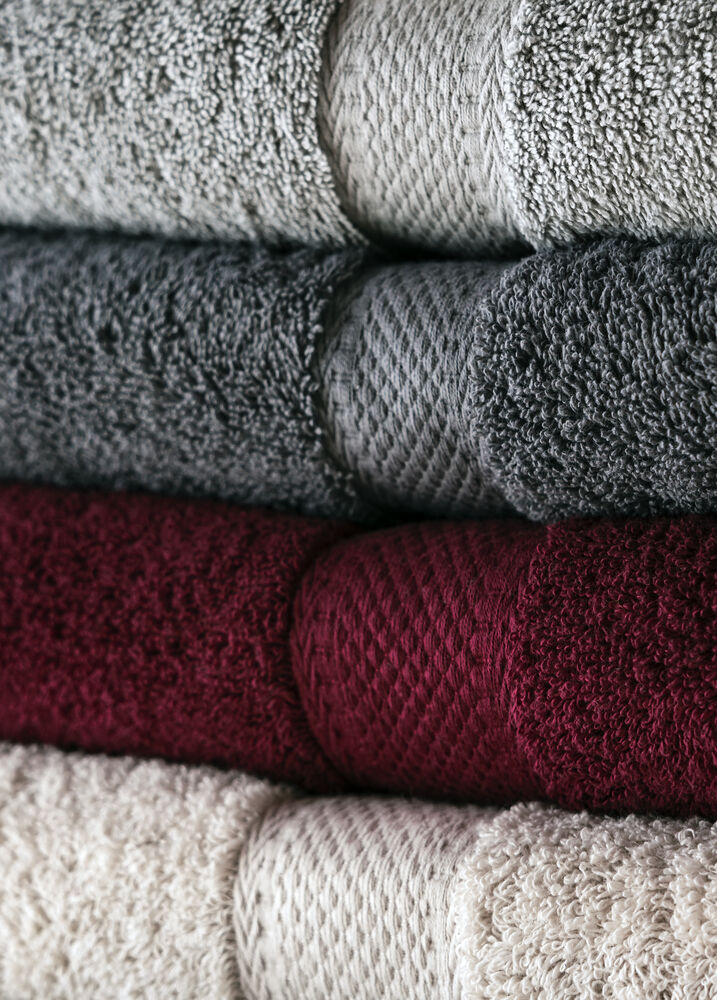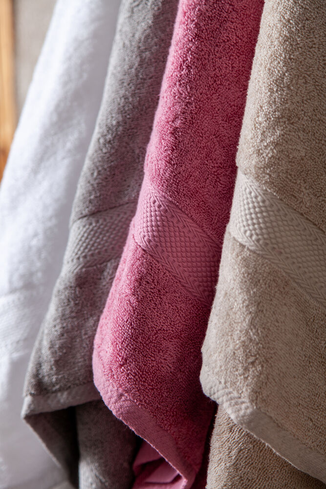 Dette er en herlig frotté i kjemmet bomull som er sterk og behagelig å tørke seg med.