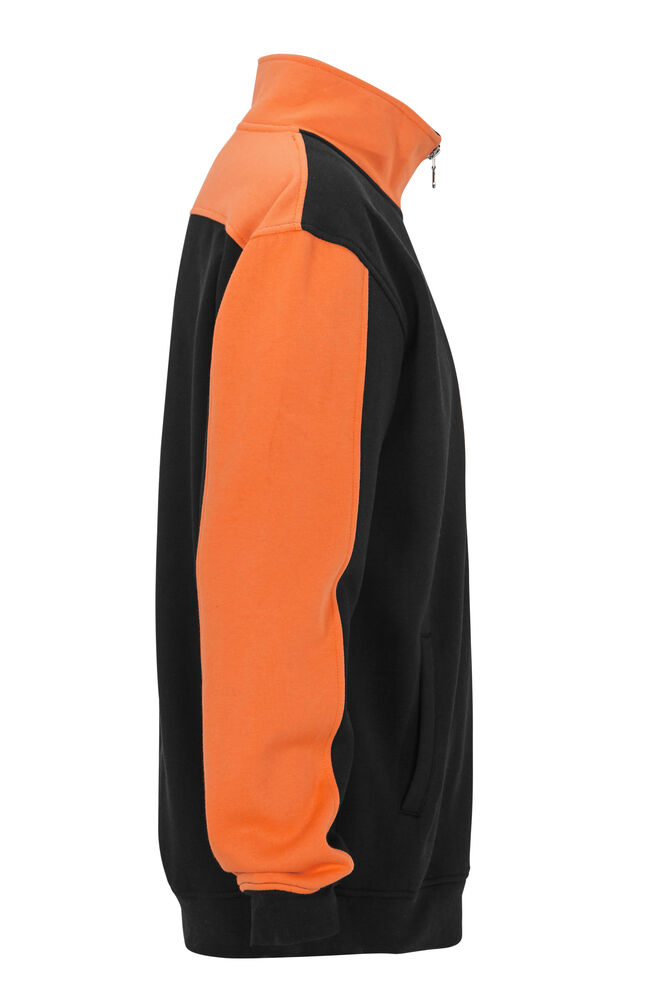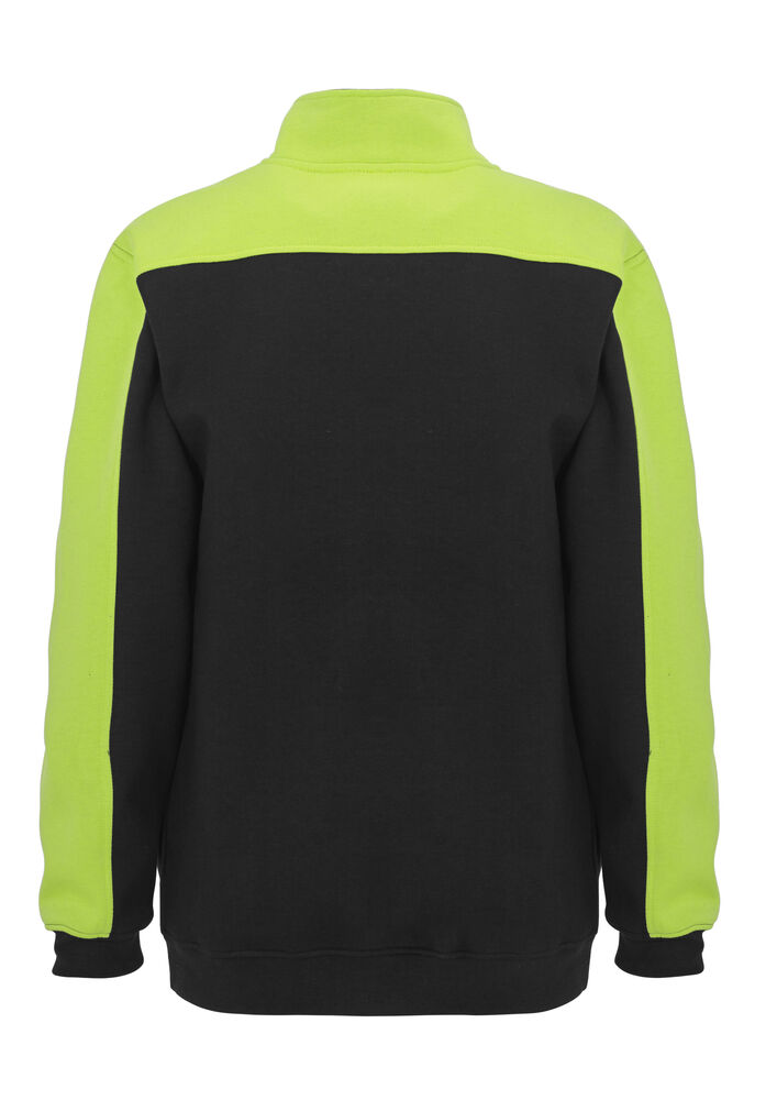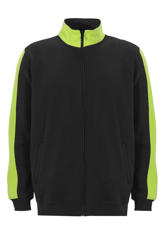 Genser med glidelås i front. Kontrastfarge på erm, krage og skulderparti.