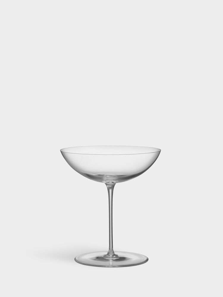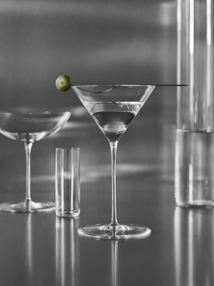 Kuler, sylindre og kjegler danner grunnlaget for den passende navngitte Geometry-serien, et ekte mesterverk av skandinavisk design. Elegante geometriske former og et selvsikkert uttrykk kombineres for å levere et tidløst, umiskjennelig Orrefors-design. Koppen, bena og foten utgjør de tre komponentene i en stilisert geometri. Glasset er munnblåst. Dette glasset rommer 26cl og passer til cocktailer. Designet av Claesson Koivisto Rune.