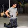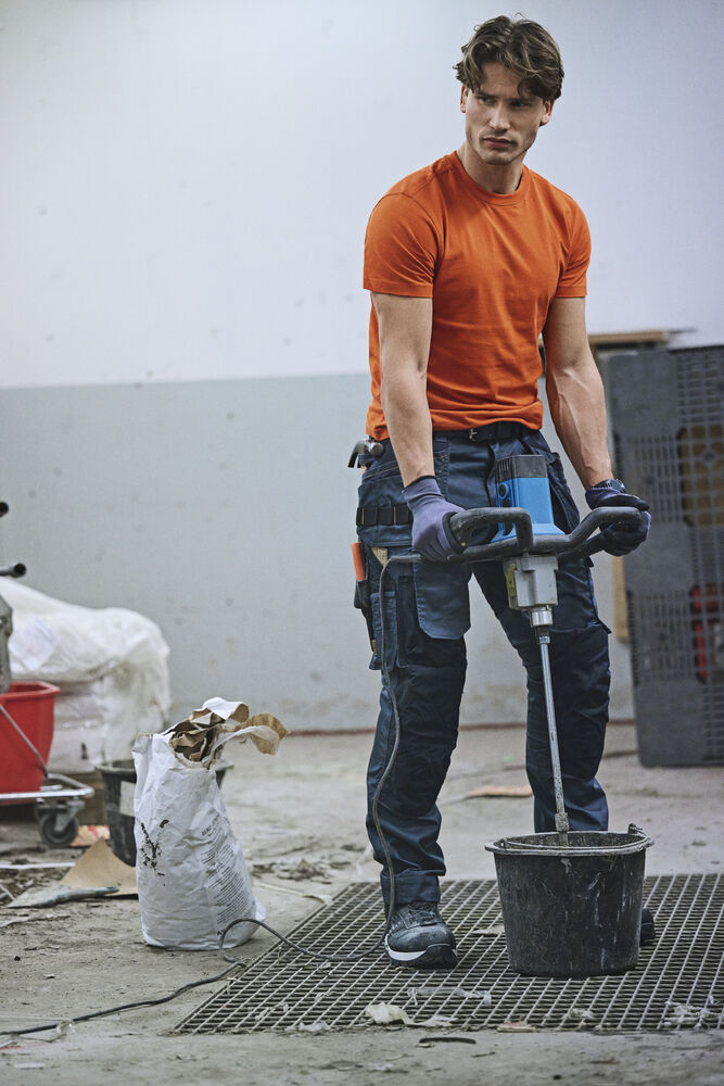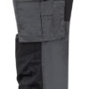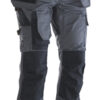 Lettstelt polyester/bomull som holder på fargen og formen. Stretchpaneler på baksiden, for økt bevegelsesfrihet. Romslige frontlommer. Hengelommer med forsterkning og ekstra rom, og en ekstra lomme med glidelås. Benlomme med ekstra rom og klaff med borrelås. Tommestokklomme med knivholder. Lomme for teppekniver på låret. Forsterkning på knebeskyttelseslommer og med to høyder for knebeskytterne. Buksebenet kan forlenges 5 cm ved at kanten på bena brettes ned.