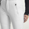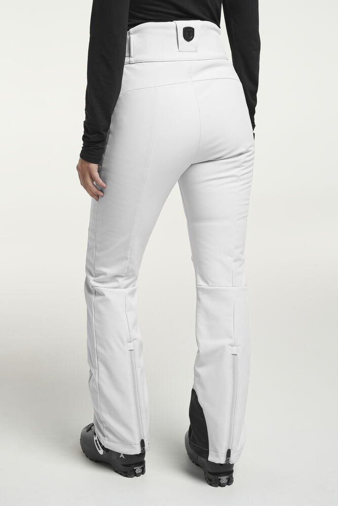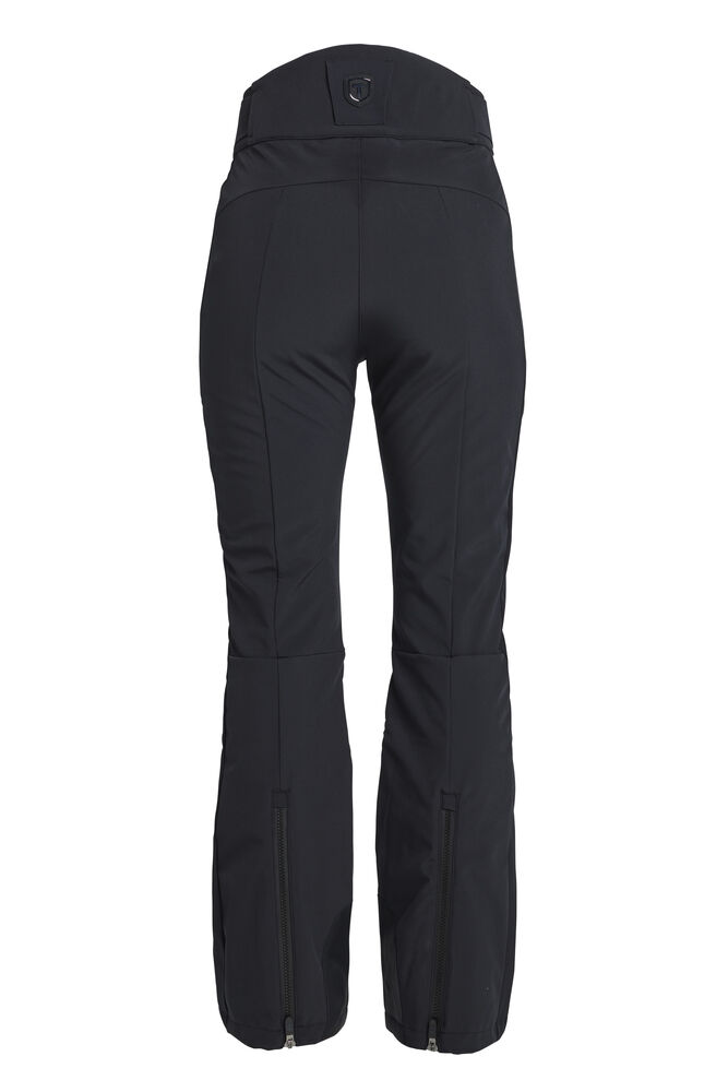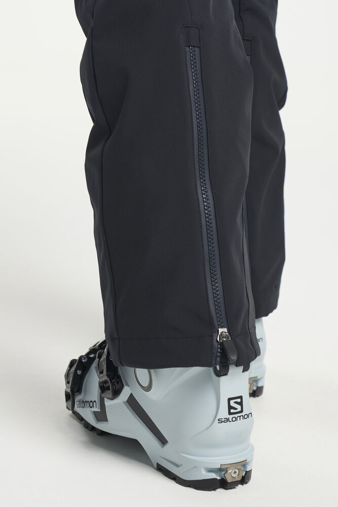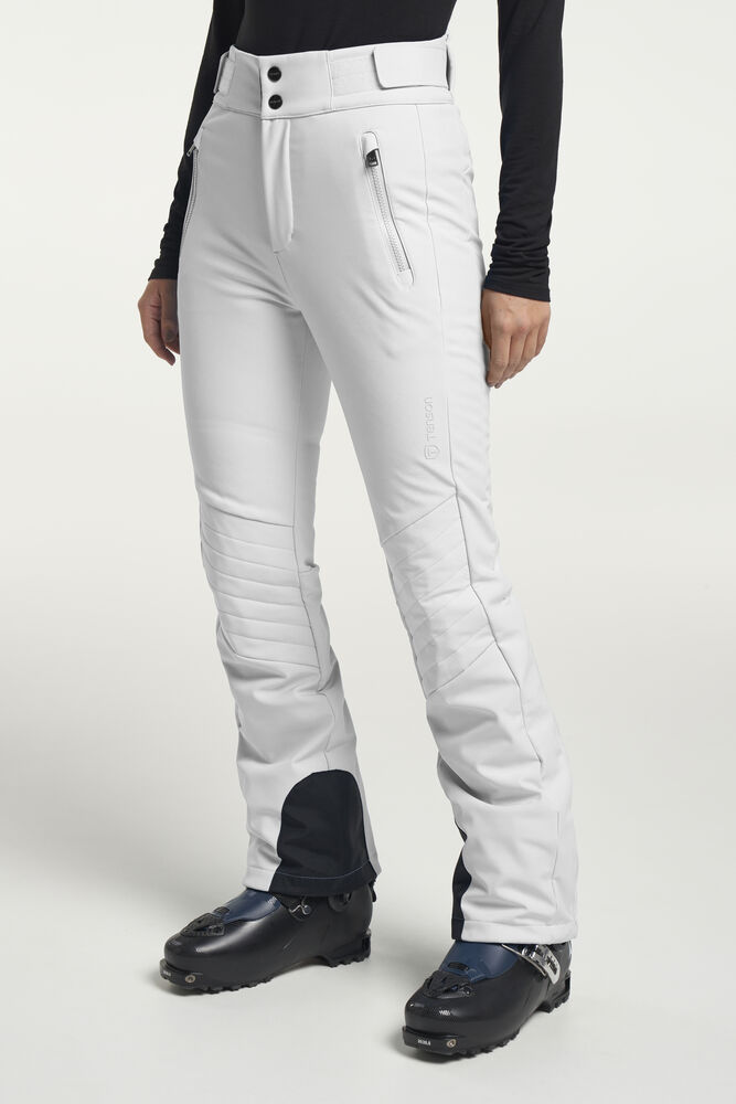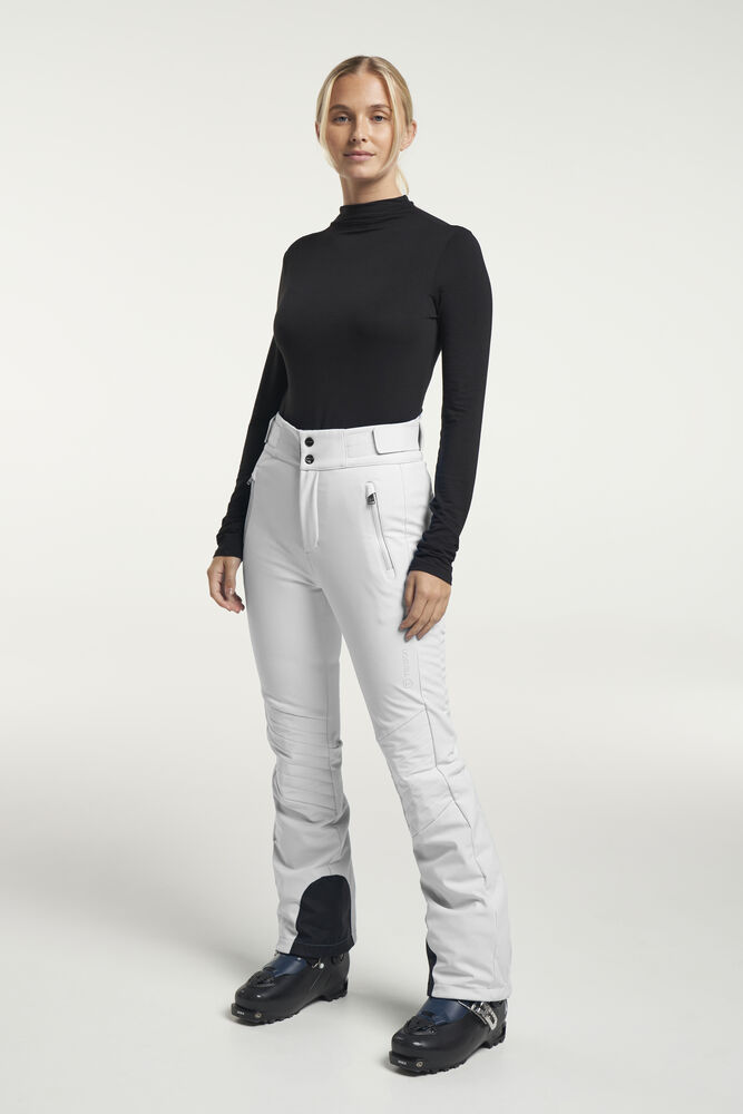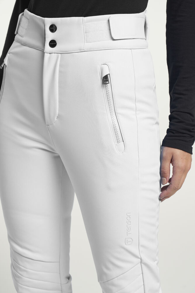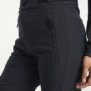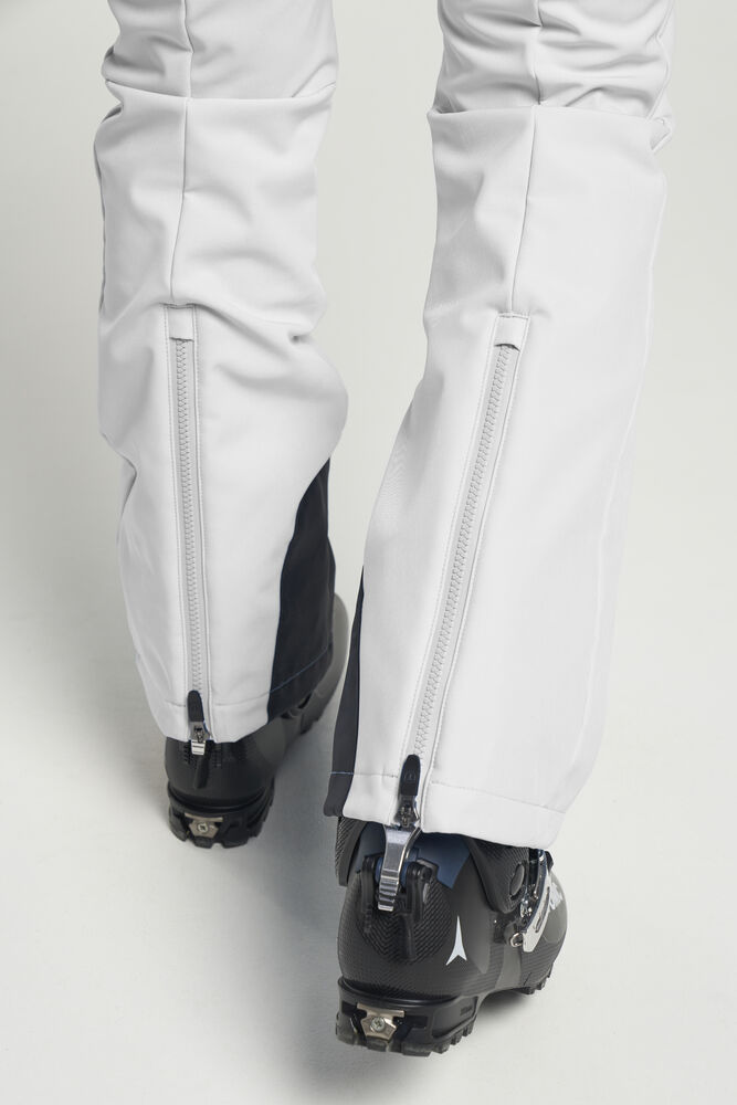 Grace Softshell Ski Pant er en moteriktig softshellbukse som gir en elegant og stilig silhuett. Skibuksen har elastisk og justerbar midje, og har ekstra bevegelsesfrihet takket være det elastiske, vannavvisende og vindtette softshell-materialet. To glidelåslommer i front, glidelås i benavslutningene, vatterte knær, snølås i benavslutningene og vannavvisende glidelåser.