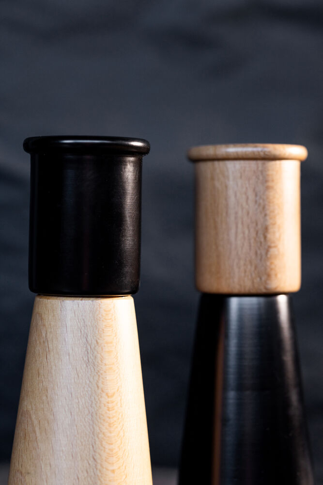 Gurken liten er et elegant og praktisk sett med to kverner – én for salt og én for pepper – designet i samarbeid med Daniel Enoksson. Inspirert av naturens mektige fjellandskap har de en konisk form som gir både stabilitet og tidløs estetikk. Med en nett høyde på 15 cm passer dette stilrene paret perfekt i ethvert kjøkken, like funksjonelle som dekorative. Kvernene er laget av sertifisert bøk og utstyrt med et holdbart keramisk kvernverk i rustfritt stål som gir jevn maling og kan justeres for ulike malegrader. Gurken liten 2-pk er en perfekt gave – til deg selv eller noen du er glad i – og finnes i to fargevarianter. Design: Daniel Enoksson x Sagaform. Leveres i en elegant, rund gaveeske.