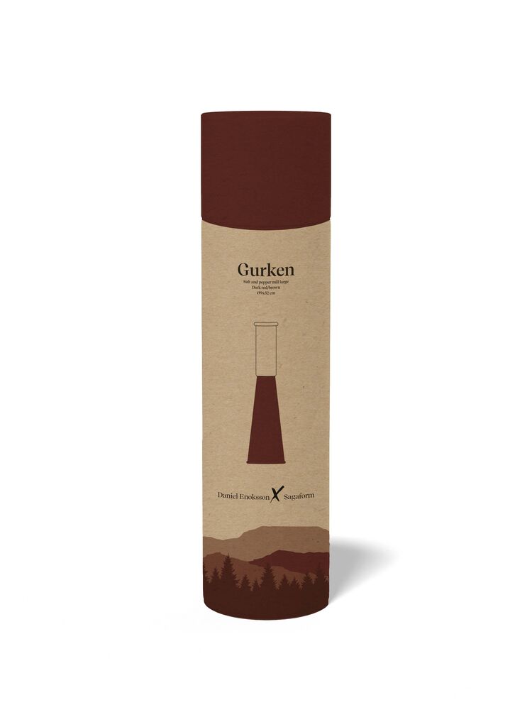 Gurken stor er en tidløs kvern for ethvert hjem, designet i samarbeid med Daniel Enoksson. Gurken er en salt- og pepperkvern inspirert av naturens mektige fjellandskap. Med sin høyde på 32 cm passer den perfekt i alle kjøkken og blir en stilig hverdagsdetalj. Den koniske formen gir både stabilitet og et tidløst uttrykk, samtidig som kvernen er både funksjonell og dekorativ. Laget av sertifisert bøk og utstyrt med et holdbart keramisk kvernverk i rustfritt stål som gir jevn maling og kan justeres for ulike malegrader. Gurken stor finnes i to fargevarianter og tilhører Gurken-familien. Design: Daniel Enoksson x Sagaform. Leveres i en elegant, rund gaveeske.