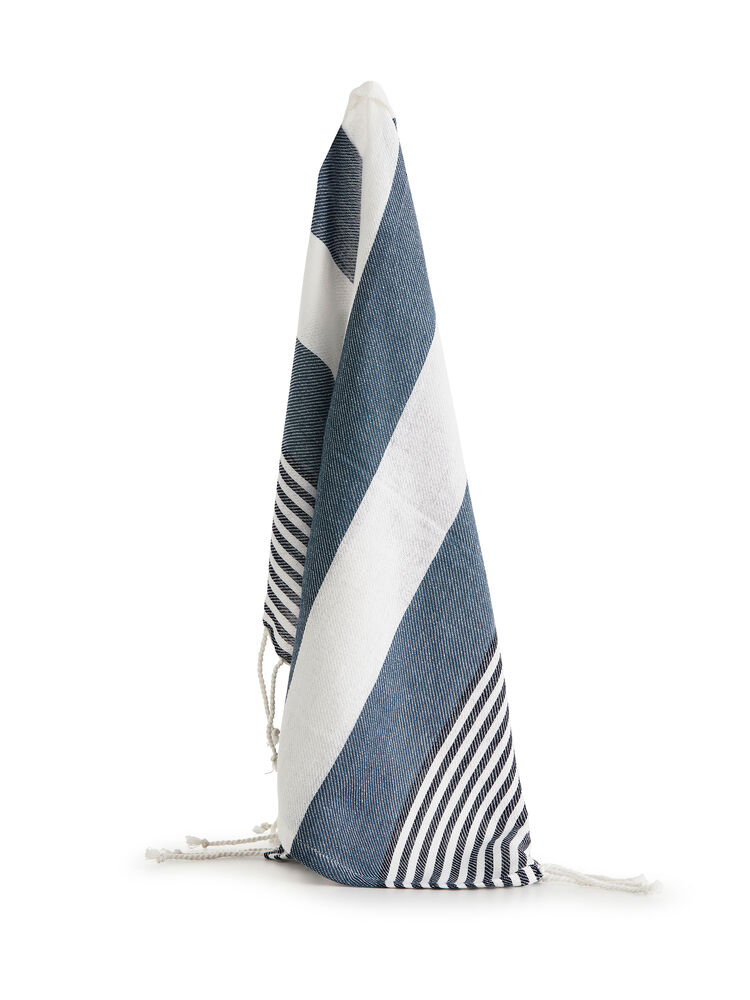 Hamam håndkle i mindre størrelse i vevet økologisk bomull som gjør det perfekt til strandturen da det tørker raskt. Den gode kvaliteten og med et varierende mønster passer det like godt som en innredningsdetalj som for eksempel bordduk eller hvorfor ikke som piknikteppe? Håndklet har frynser på kortsidene.