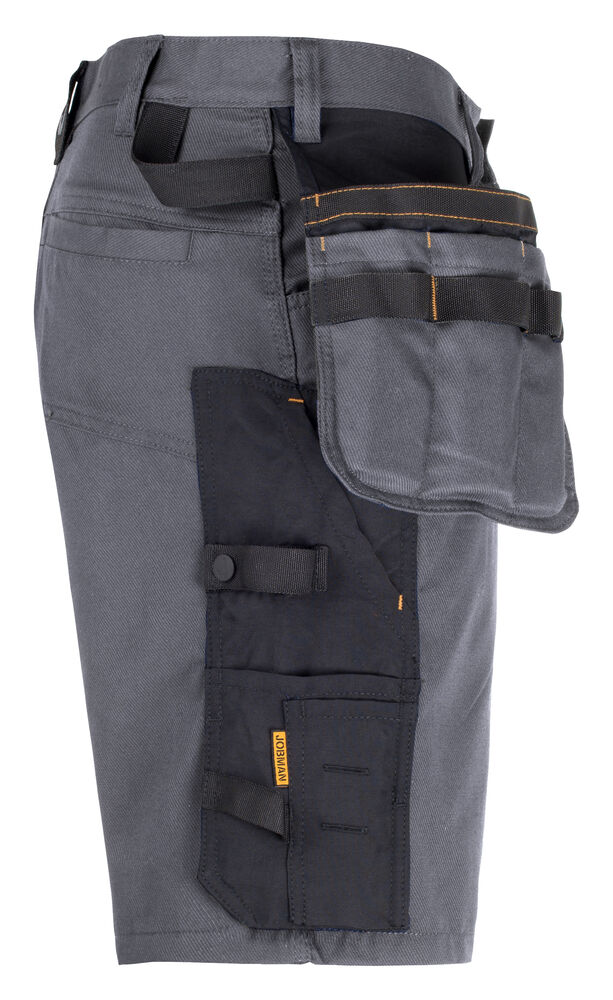 Smidig håndverkshorts i holdbar kavalleritwill med paneler i form av skrittkile i stretch Cordura® som gir ekstra bevegelsesfrihet. Romslige hengelommer med ekstra rom og forsterket innside; kan puttes i frontlommene. Ekstra beltehemper på de største størrelsene. Hammerhank. Tommestokklomme med knivholder. Skrå lårlomme med glidelås, telefonlomme, rom for ID-kort og ekstra rom.