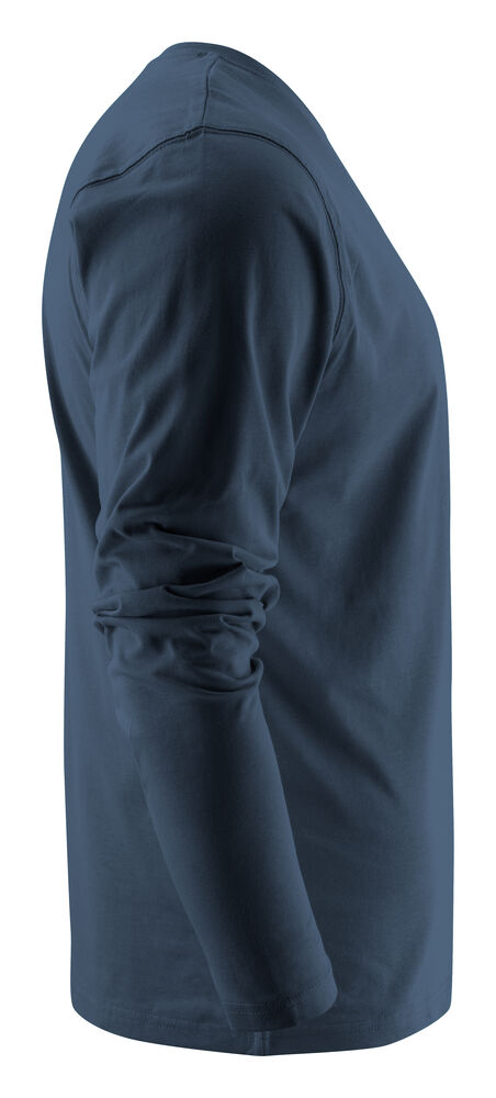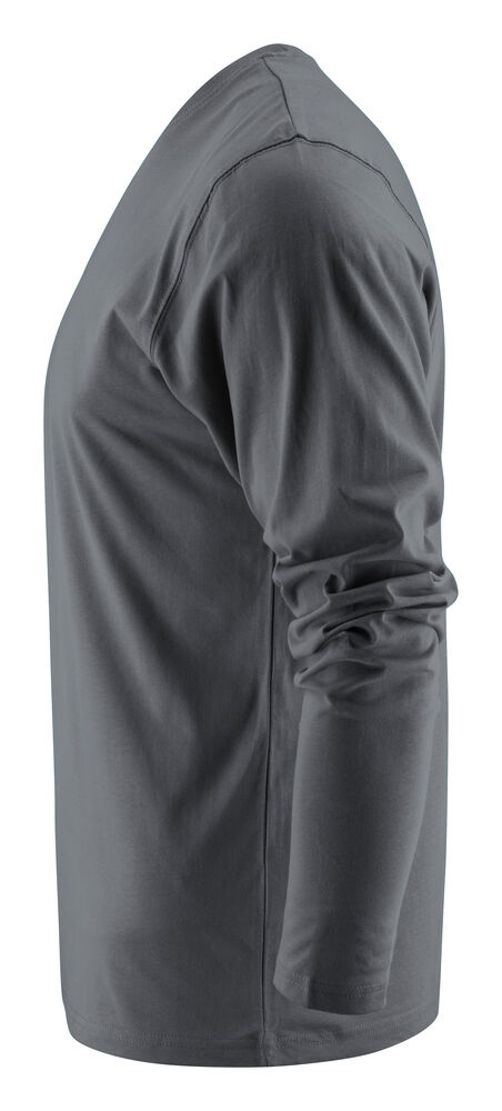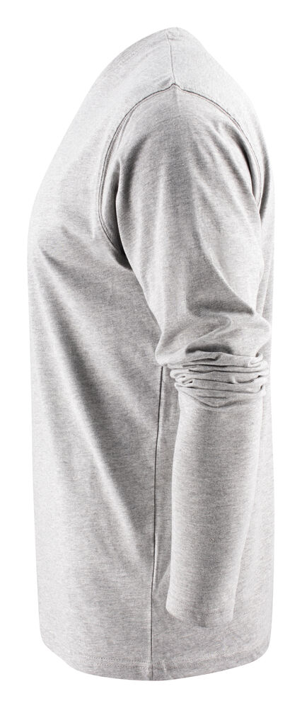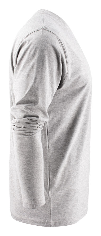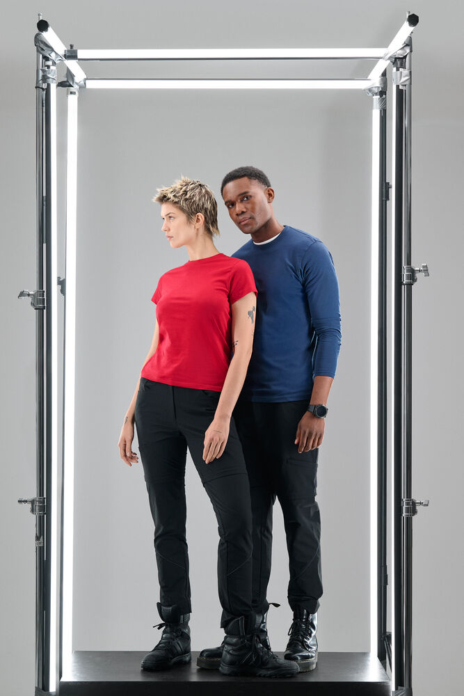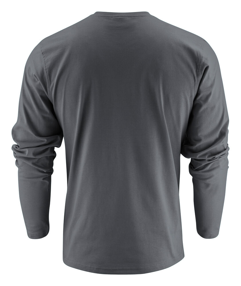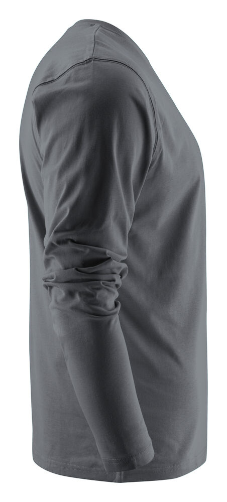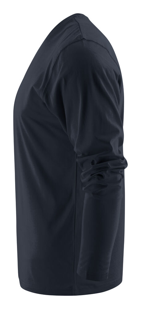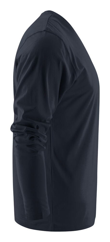 Langermet t-skjorte med moderne passform, med forsterkning i skuldersømmene og doble sømmer rundt halsen. Elastan i halsribb. Halsribb med fire lag for bedre stabilitet. I den indre venstre sidesømmen er det anordnet en lomme for å sy i en vaskebrikke. Leveres i en biobasert, komposterbar pose. Øko-Tex sertifisert.