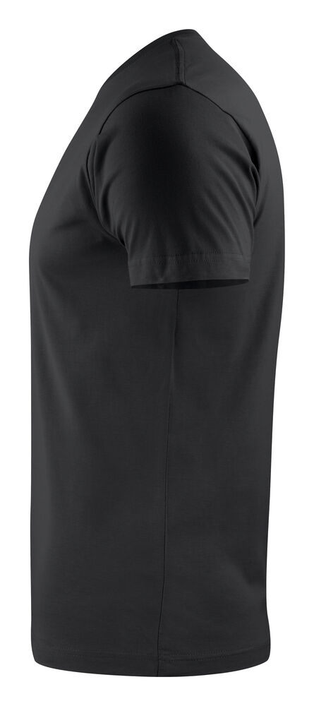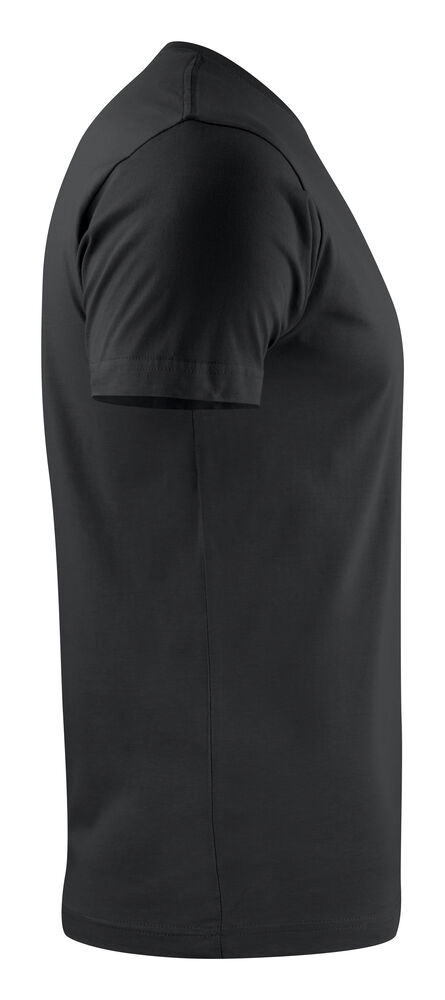 T-skjorte med moderne passform, med forsterkning i skuldersømmene og doble sømmer rundt halsen. Elastan i halsribb. Halsribb med fire lag for bedre stabilitet. I den indre venstre sidesømmen er det anordnet en lomme for å sy i en vaskebrikke. Leveres i en biobasert, komposterbar pose. Øko-Tex sertifisert.