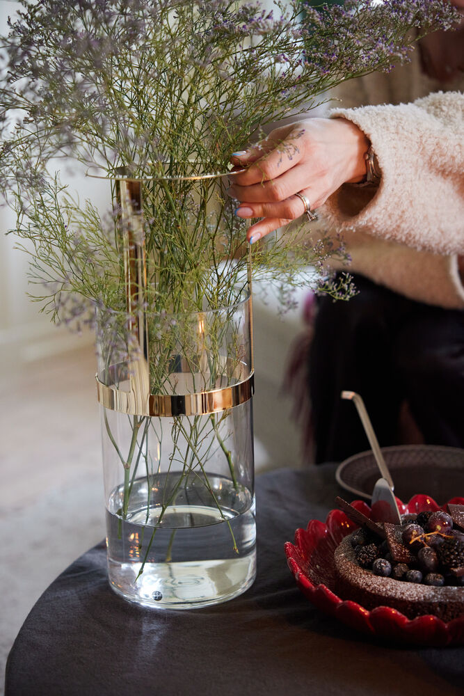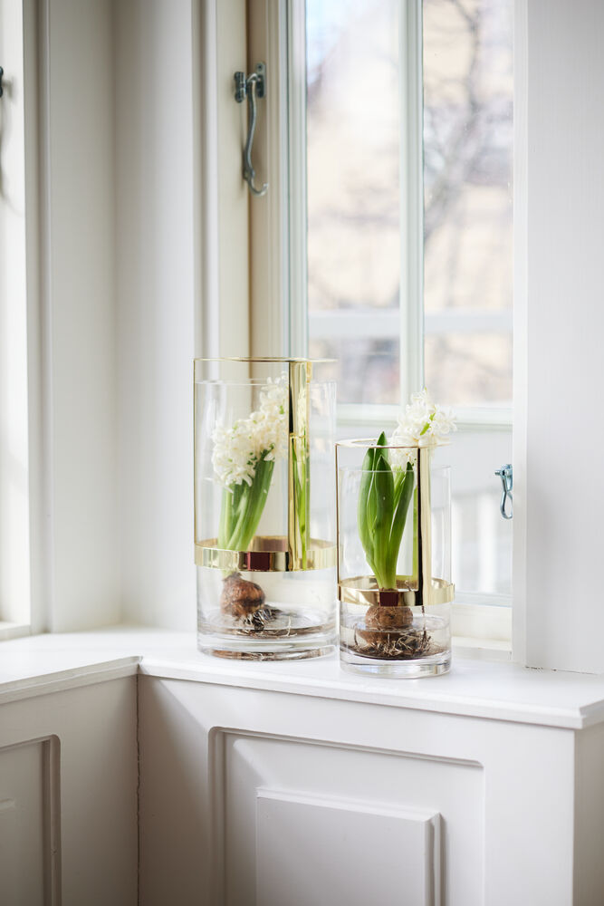 Hold er en unik glassvase designet av Pascal Charmolu. Vasens lengde kan justeres ved å flytte metallholderen opp eller ned. For å kunne støtte opp høye snittblomster med stil.