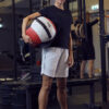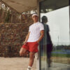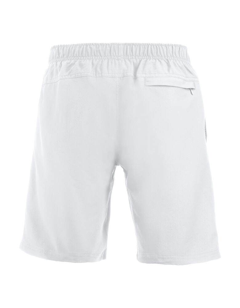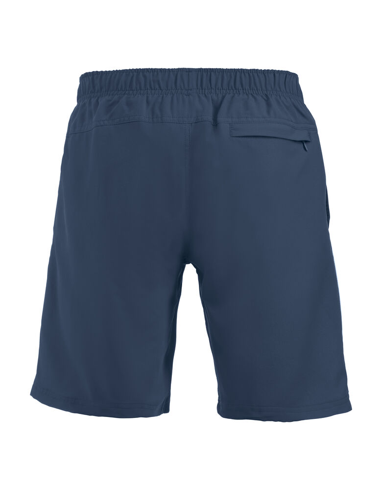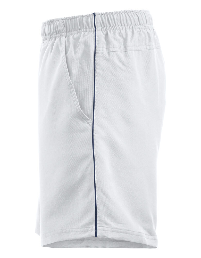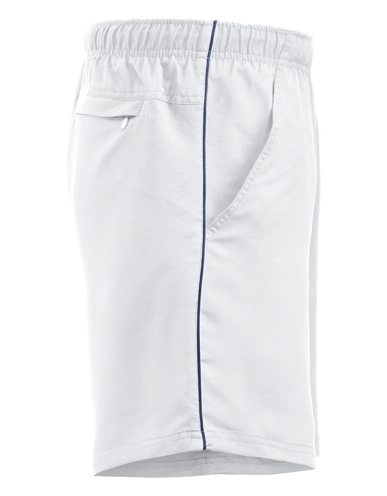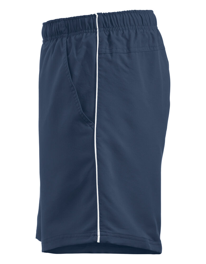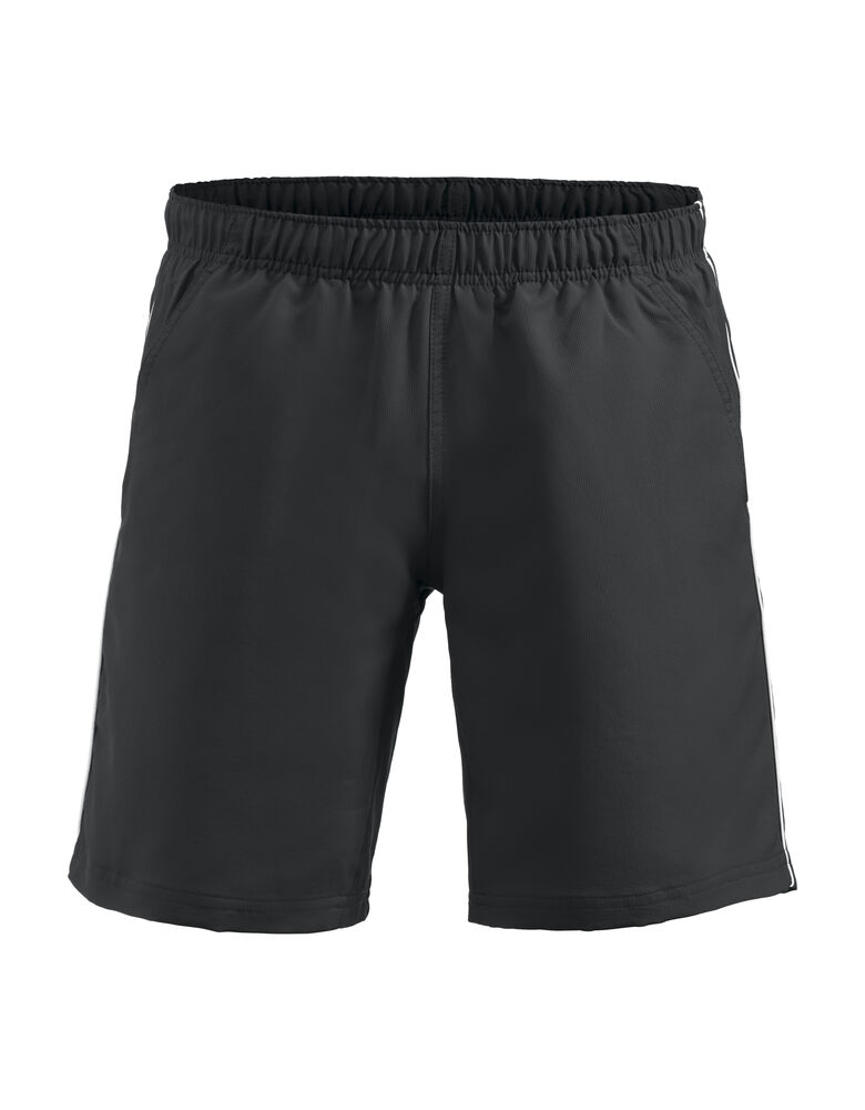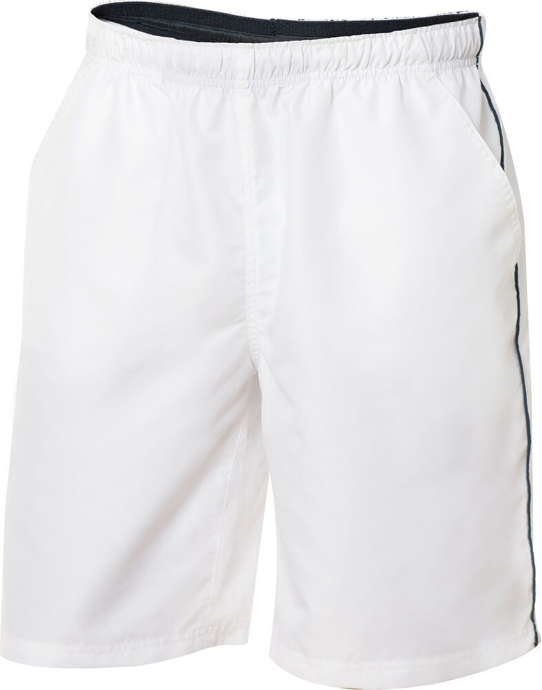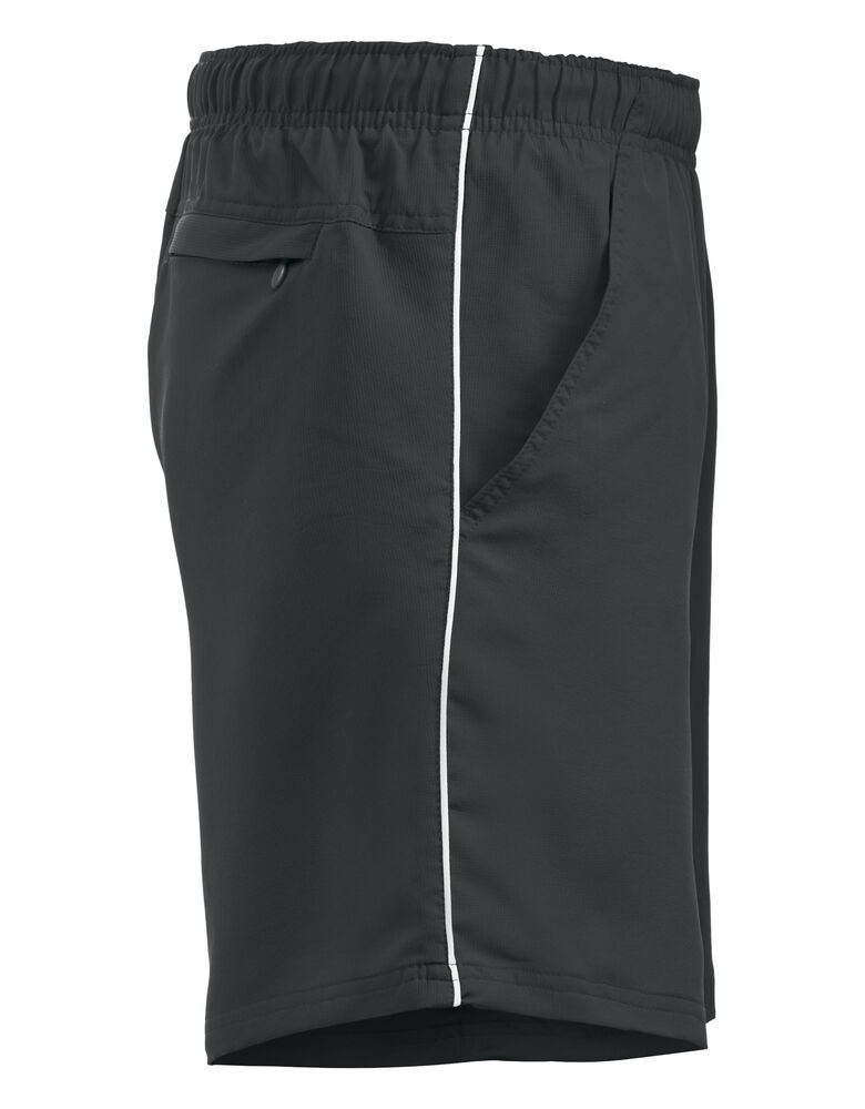 Sports shorts med kontrast piping i side sømmene. To lommer i front og en baklomme med glidelås. Mesh linning på innsiden. Elastisk snor i midje.