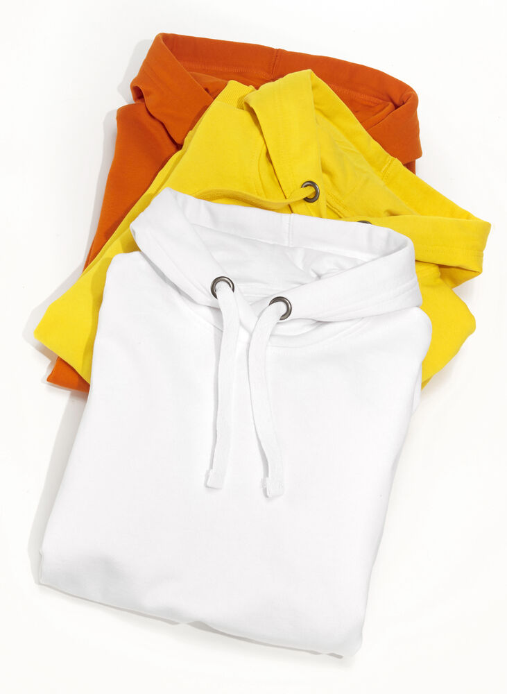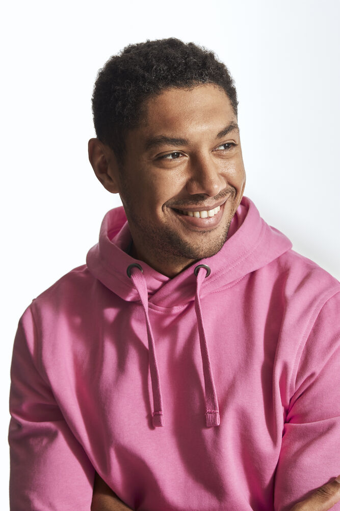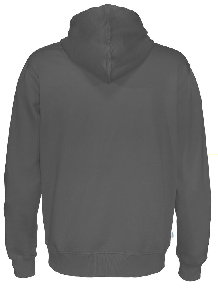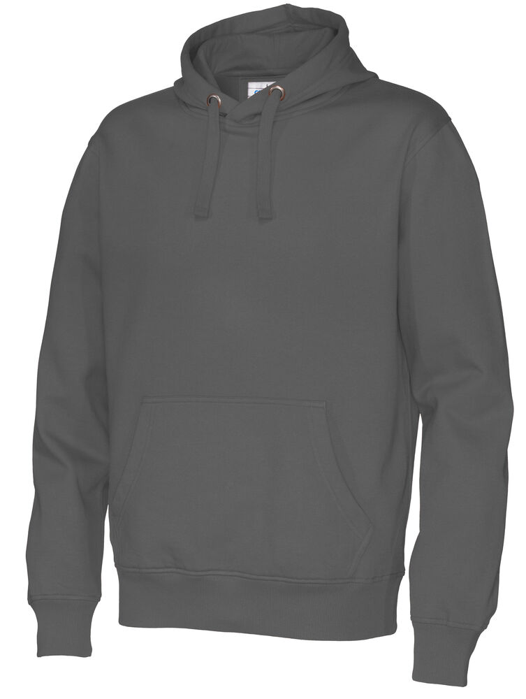 Moderne passform, hette med robust snor og en lomme i front med "inngang" på to sider.