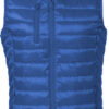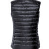 Moderne vest i fuskedun. Tre utvendige lommer med glidelås. To innvendige lommer. Tilpasset for hodetelefoner.