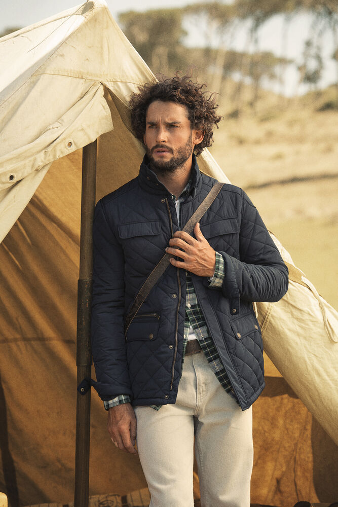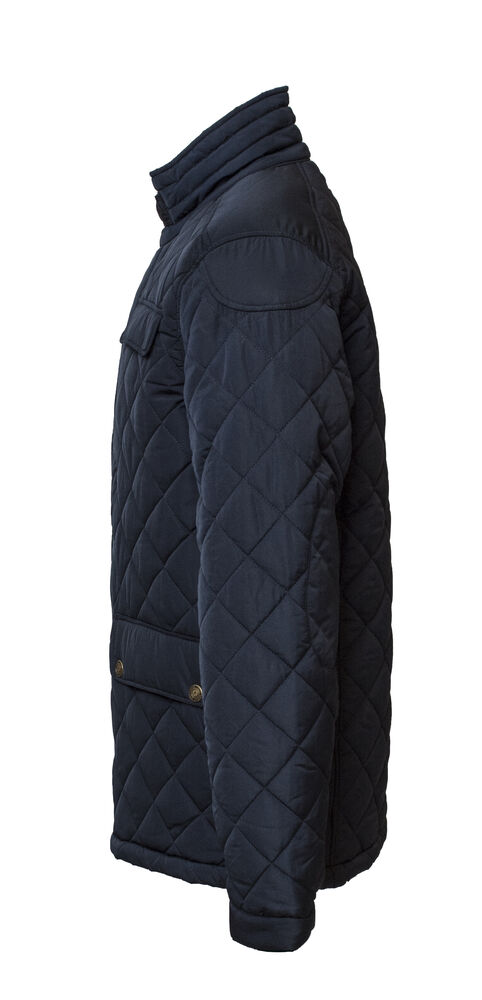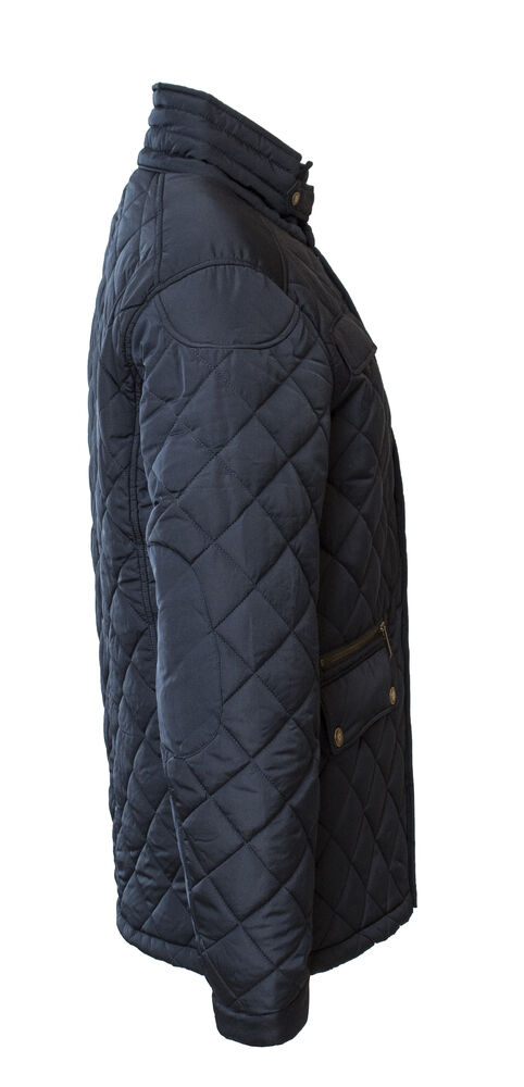 Kviltet jakke med tre lommer i front og to på innsiden. Varmt og mykt materiale i frontlommene for å holde hendene varme.