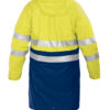 Slitesterk regnjakke sertifisert i varselklasse 3. Sertifisert ifølge EU-standarden EN 343, noe som innebærer at den er godkjent i henhold til EUs regler for regntøy. Sydde og sveisede sømmer. 100 cm lang i Large. Hette med snor. Regulerbare ermer. Sydde og sveisede sømmer.