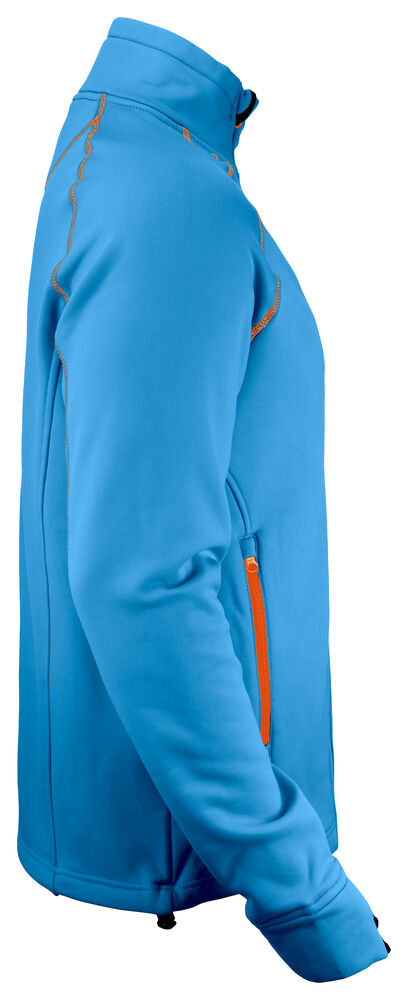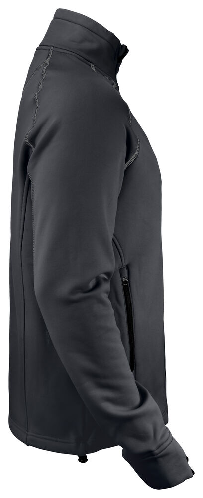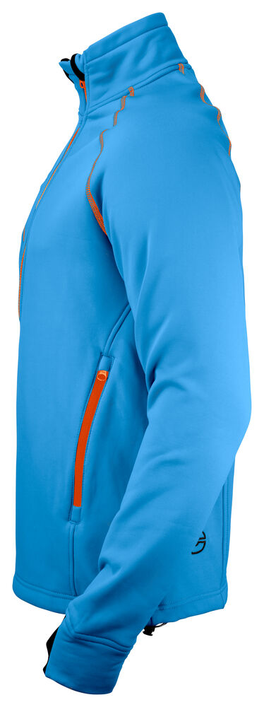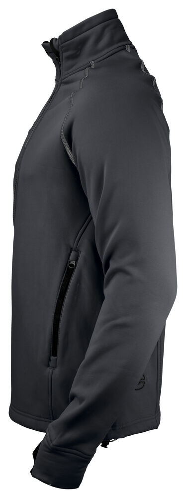 Jakke i elastisk polyester med fleeceinnside som varmer. Brystlomme med ID-kortholder. Romslige frontlommer med glidelås. Regulerbar i midjen og tommelhull på mansjetter. Kort ekstra glidelås i kragen for ventilasjon.