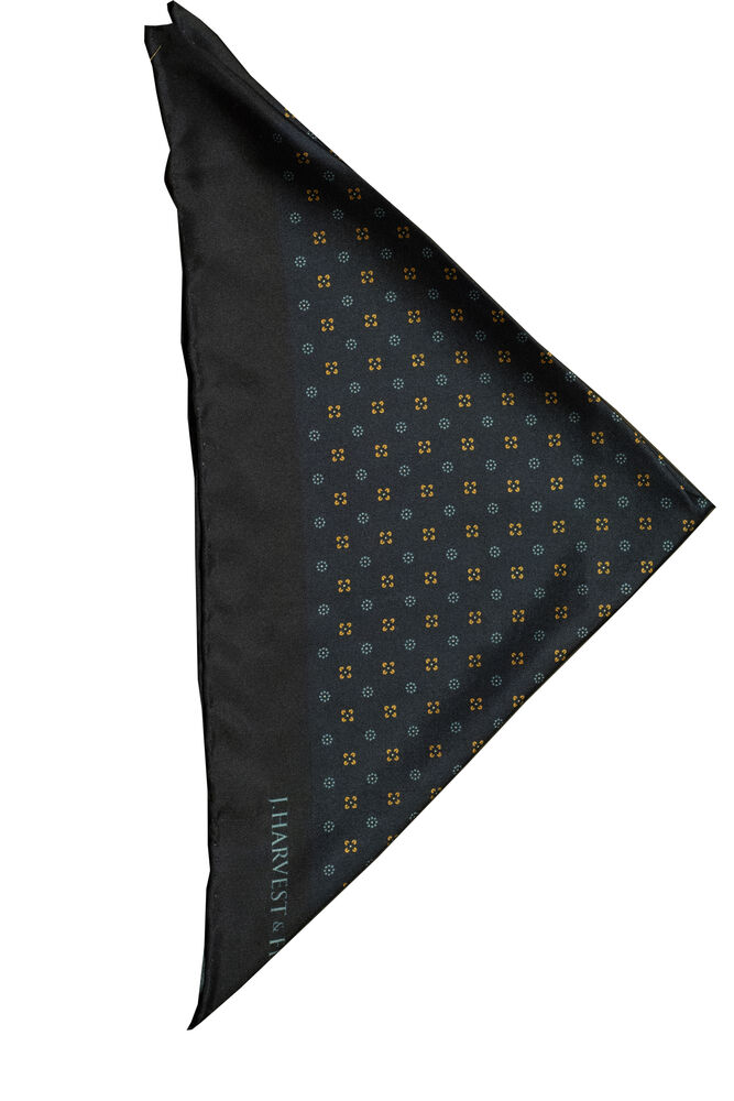 Klassisk lommetørkle av silke med blomstrete motiv.