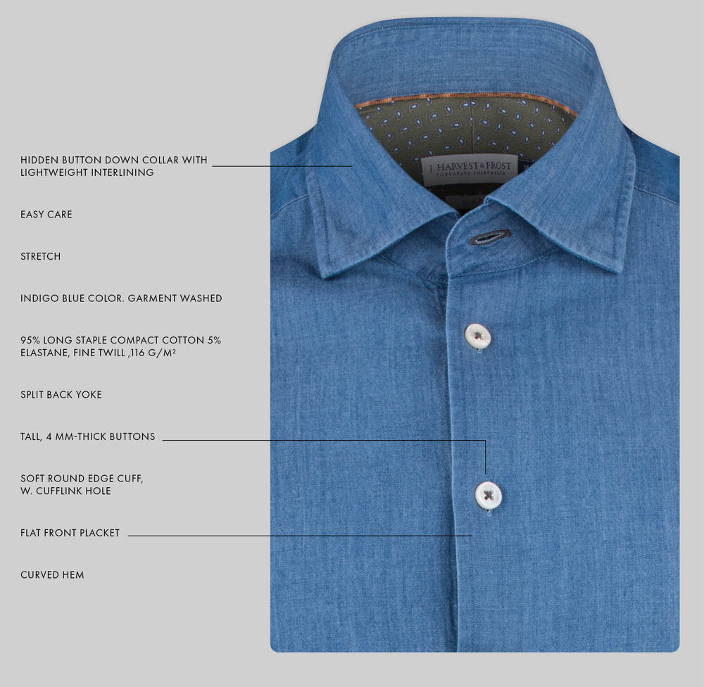 Indigo Bow 130 er en supermyk, lettvekts denimskjorte med stretch.