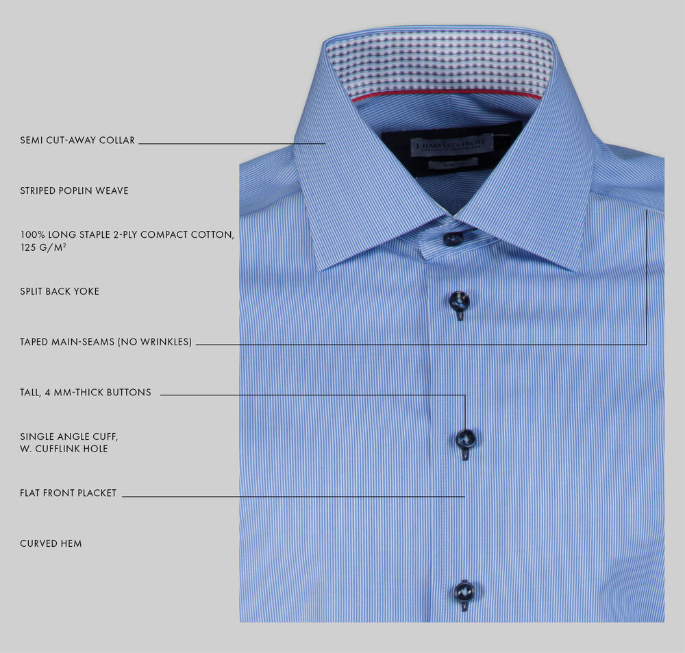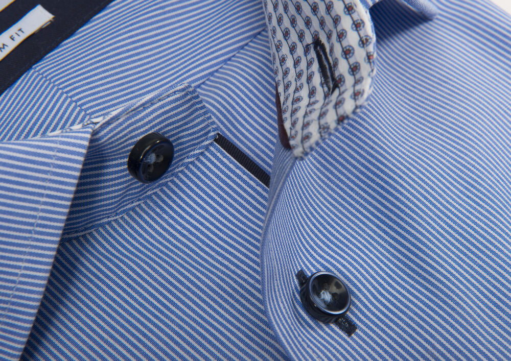 Hvite, tynne striper på en blå eller antrasittgrå base gjør Red Bow 24 til en stilig ny versjon av den klassiske stripete skjorten. Skjorten passer perfekt sammen med alle farger og mønstre, og er et utmerket valg hvis du ønsker å tillegge farger i din normalt hvite og blå garderobe. Skjorten er produsert av fint twill-stoff for å gi perfekt ytelse. Red Bow 24 er designet for at du enkelt skal kunne gå rett fra kontoret til et middagsselskap med familie eller forretningspartnere.