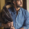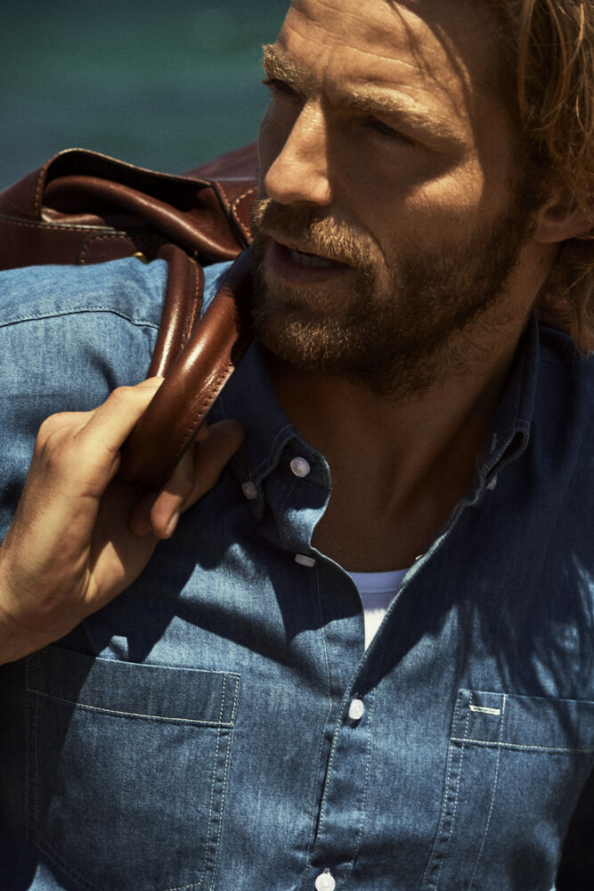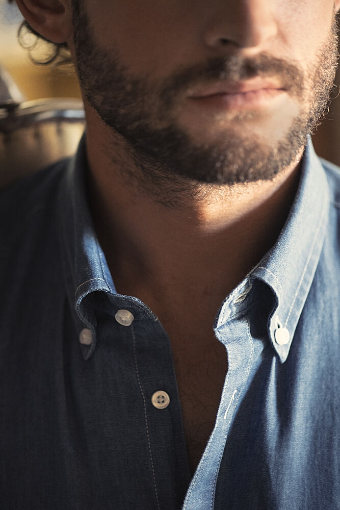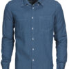 Denimskjorte til herre. Button down krage og justerbare mansjetter. Brystlomme på begge sider. Rutemønstret kontrast på innsiden av bærestykket og i mansjettene. Lett innsvinget og med en noe forlenget rygg.