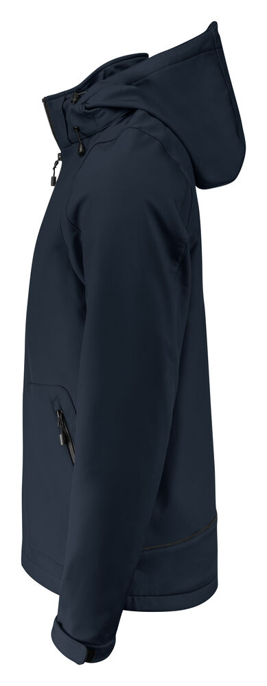 Softshelljakke med avtagbar hette. Regulerbare snorer i nedekant og velcro-stropper i ermavslutning. Reflexpiping bak for bedre synlighet. 3000WP/ 3000Mvp.