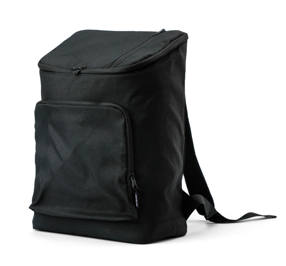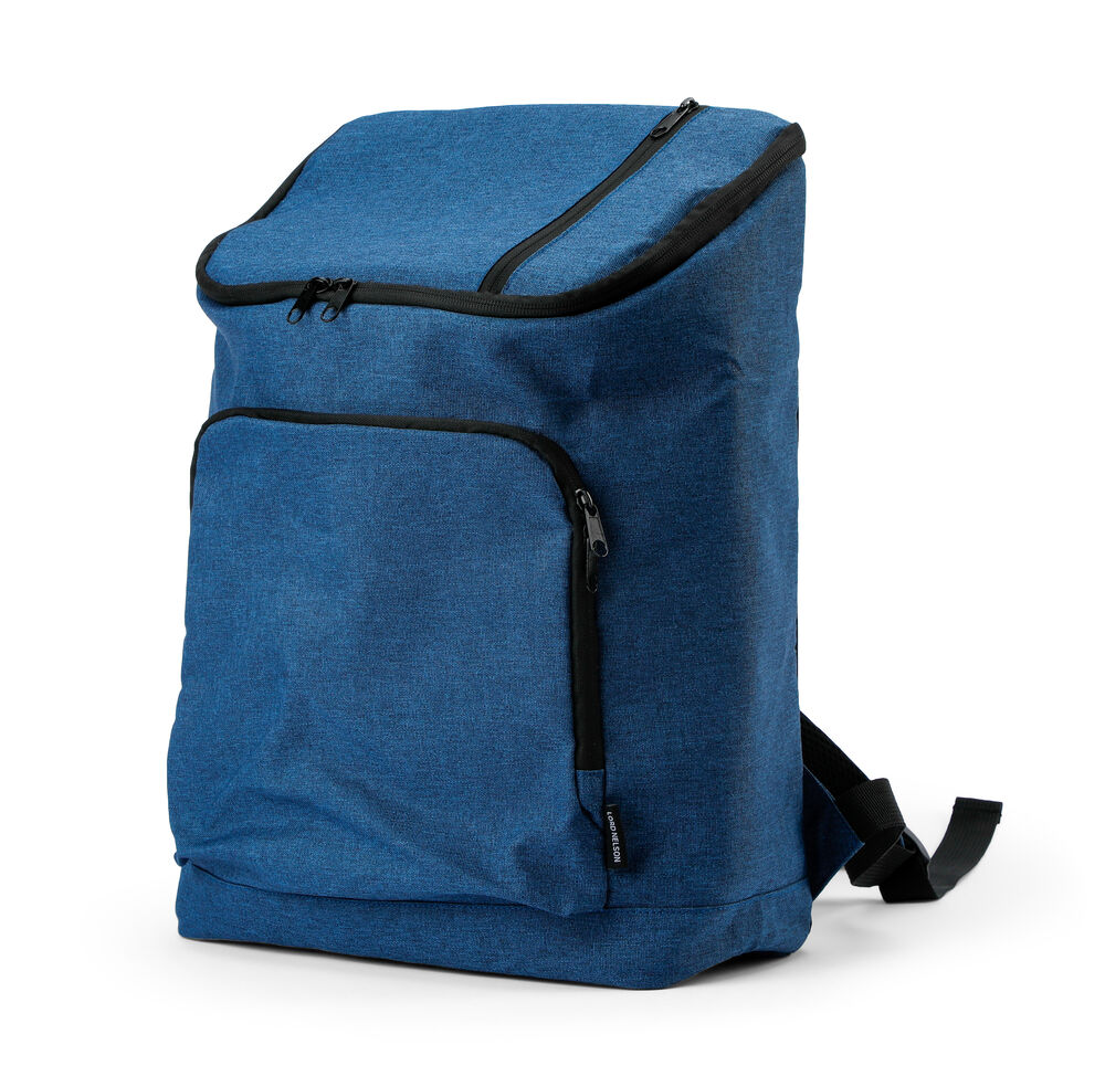Romslig kjøleryggsekk med en større lomme foran og en mindre lomme på toppen av sekken.